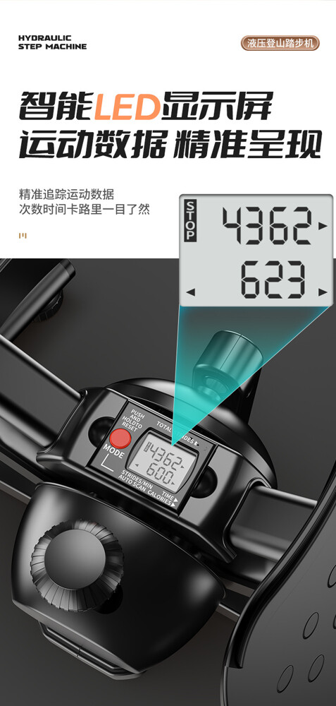 「顯示功能」:智能LED顯示屏(時間/次數/卡路里)