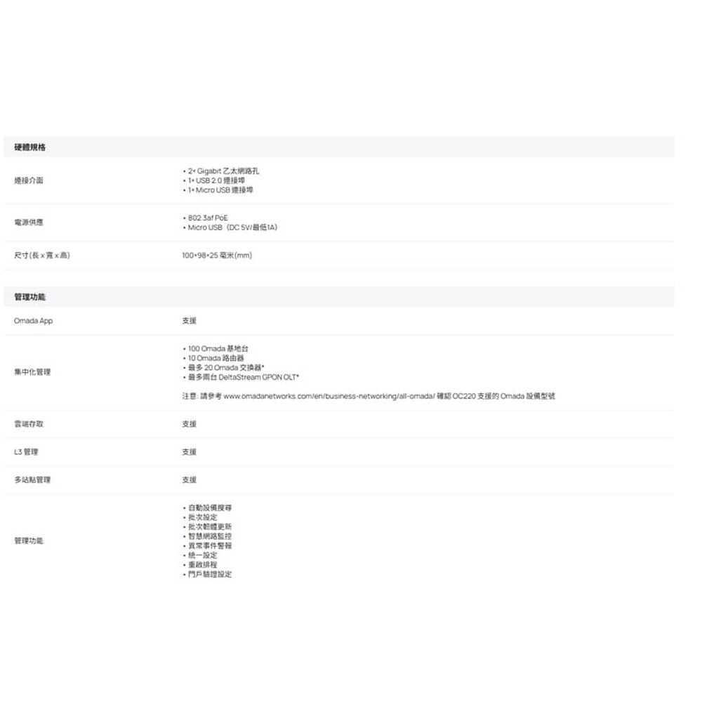 •集中管理: 支援最多 100 台 Omada 基地台、10 台 Omada 路由器、20 台 Omada 交換器和 2 台 DeltaStream GPON OLTs*