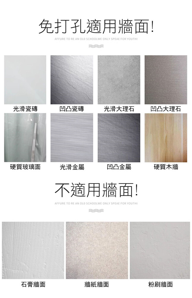 適用牆面:玻璃、磁磚、金屬、鏡面等光滑表面。
