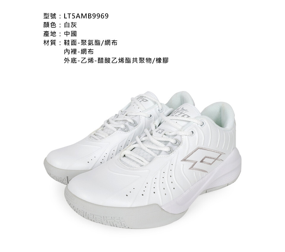 LOTTO 男風神避震籃球鞋-運動 休閒 訓練 白灰