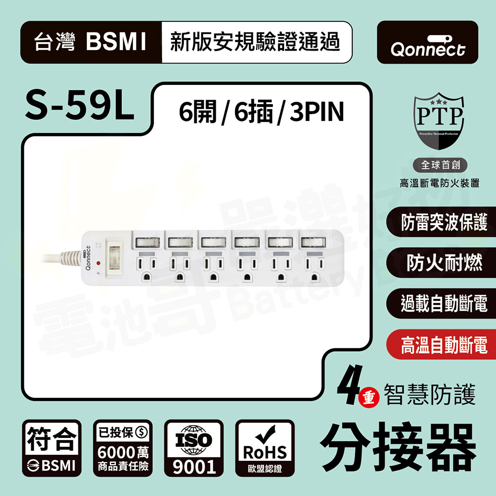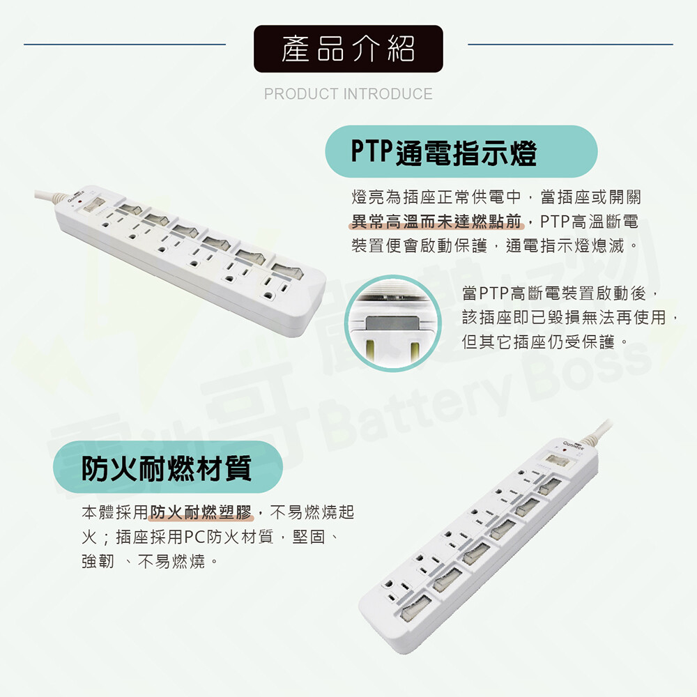 🔹7開6插 3P延長線 6尺 1.8M 高溫自動斷電延長線 多開多插延長線 新安規防雷擊【PL105】