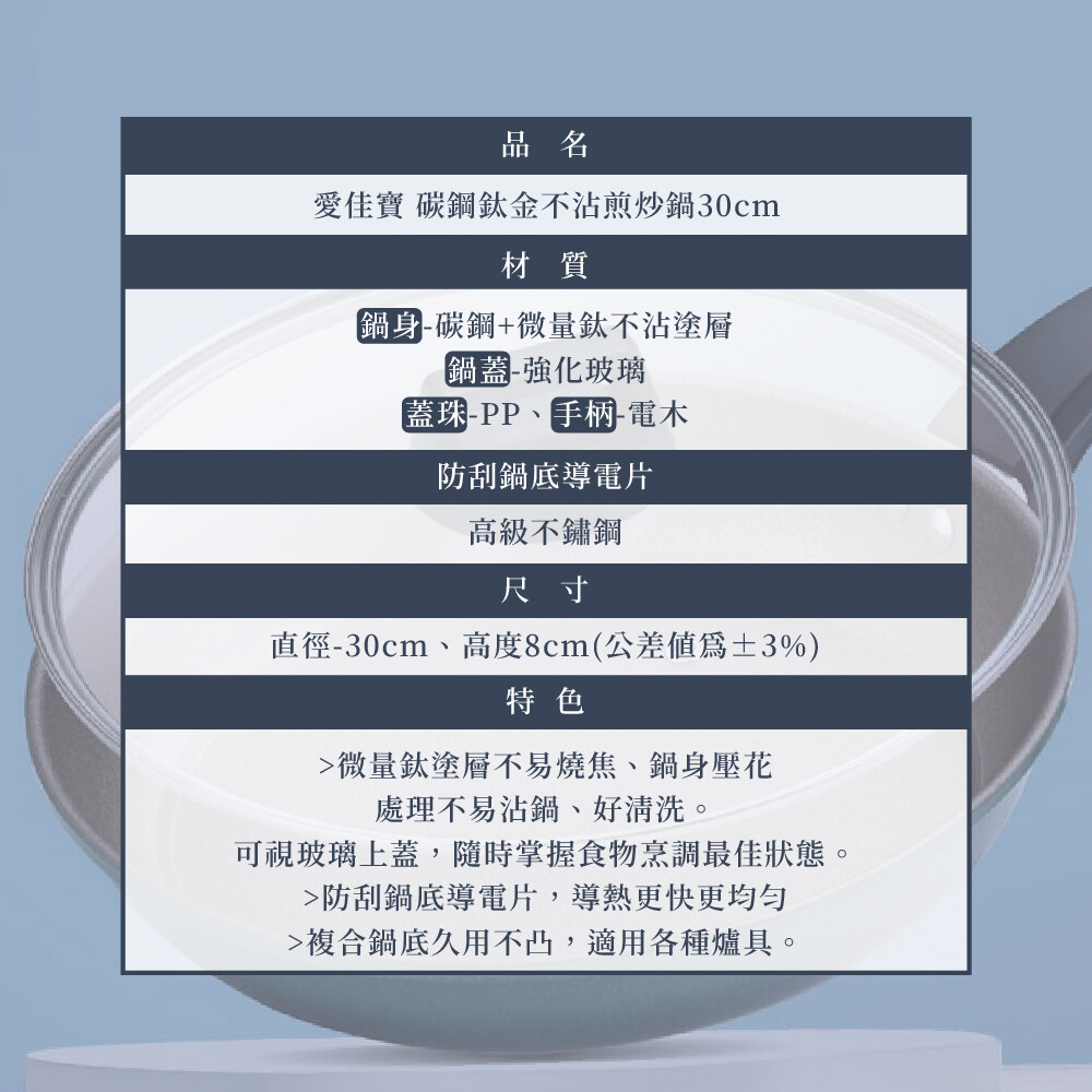 【愛佳寶】碳鋼鈦金不沾煎炒鍋30cm