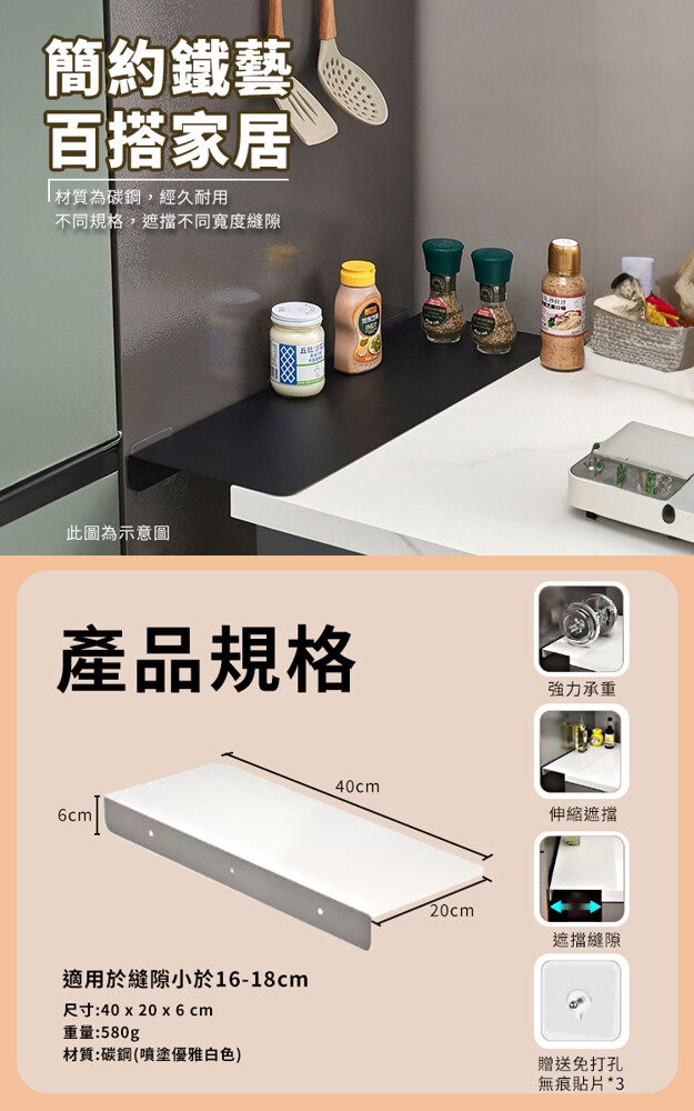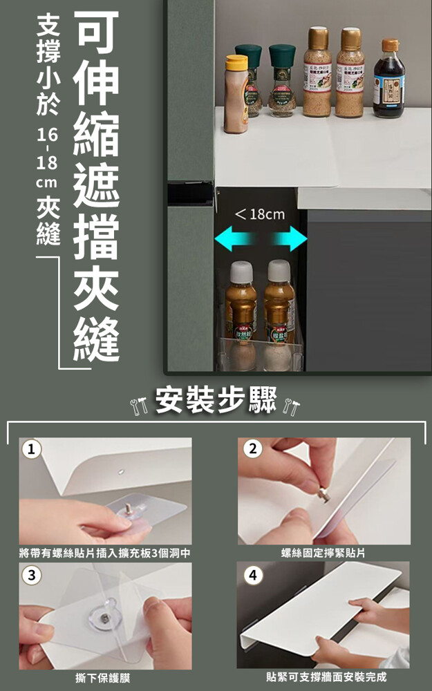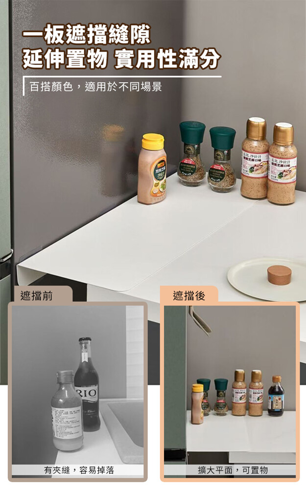 4.除了填補縫隙,還可作為延伸檯面、收納架、擋水板等使用,提升廚房整體實用性。