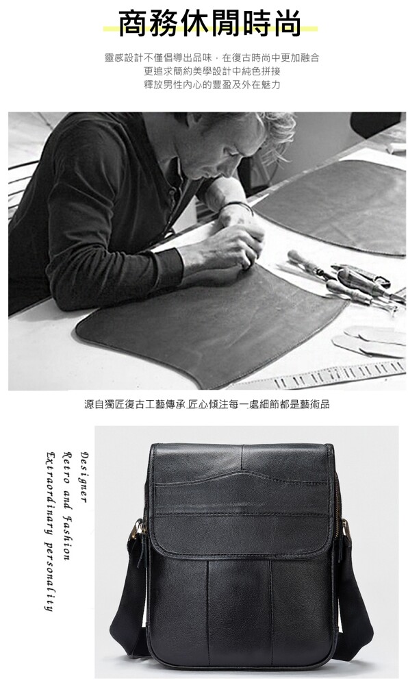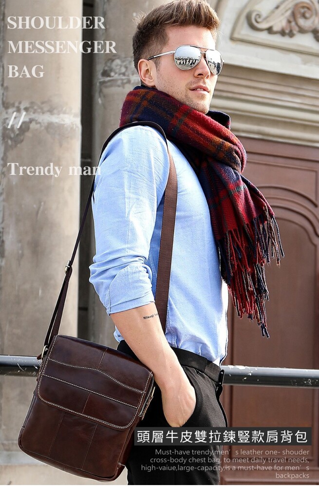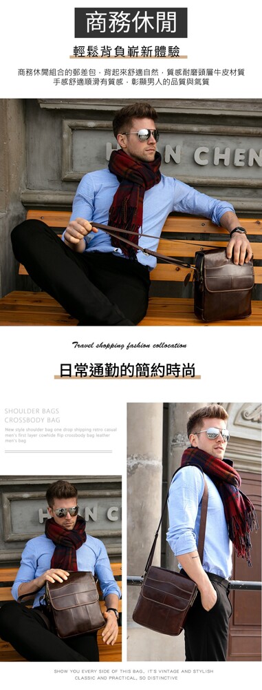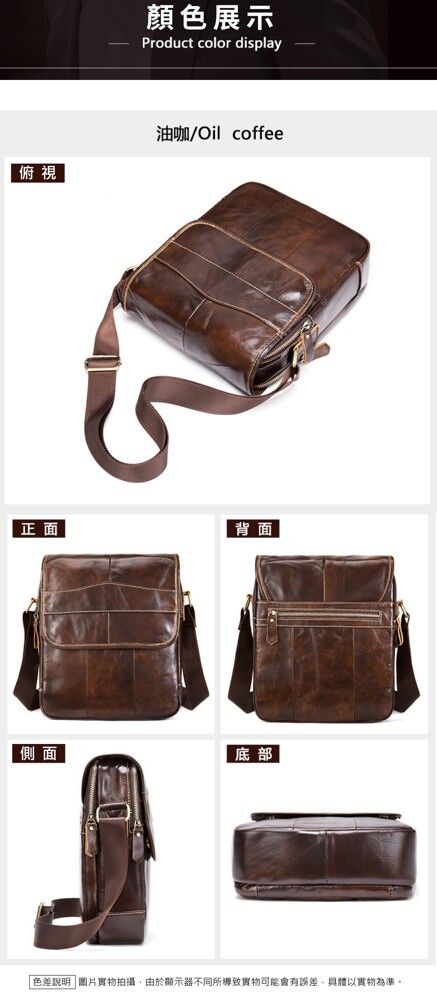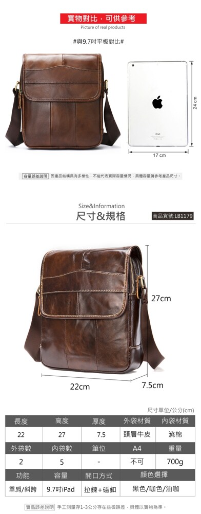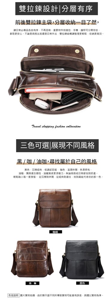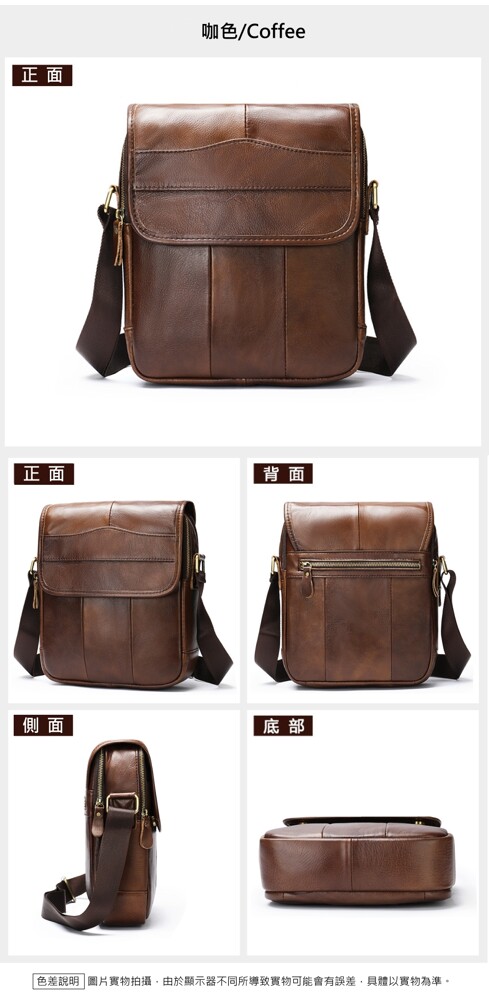 商品名稱【喜番屋】真皮頭層牛皮雙拉鍊男士豎款肩背包斜背包單肩包男包【LB1179】