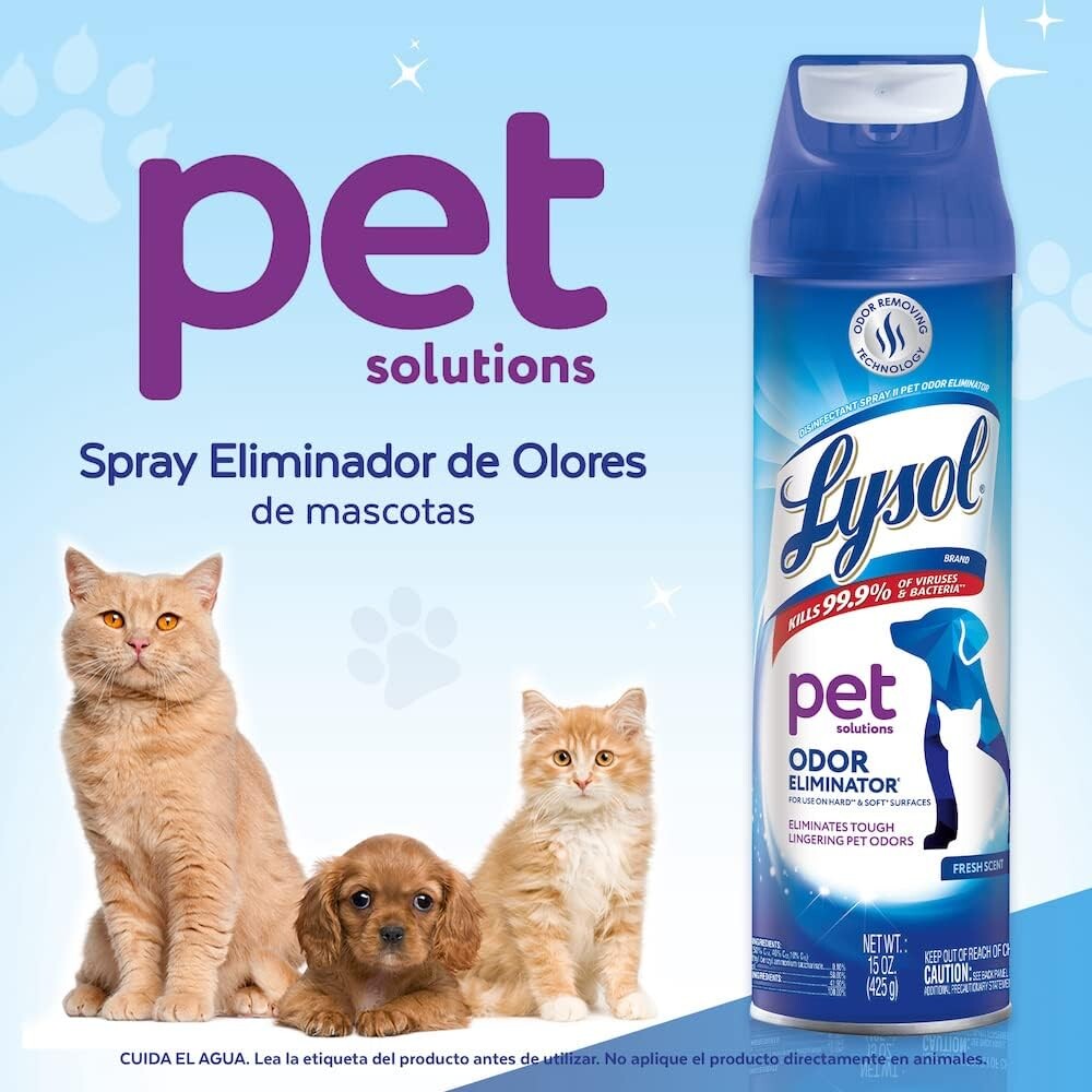 美國Lysol來舒寵物消臭噴霧--清新香味(425g/15oz)*1 適用於寵物區域:這款噴霧適用於寵物區域周圍,以去除寵物中的任何不良氣味。 請勿將產品直接塗抹於動物身上。 按照指示使用。 產地:美國 有效期限:2年