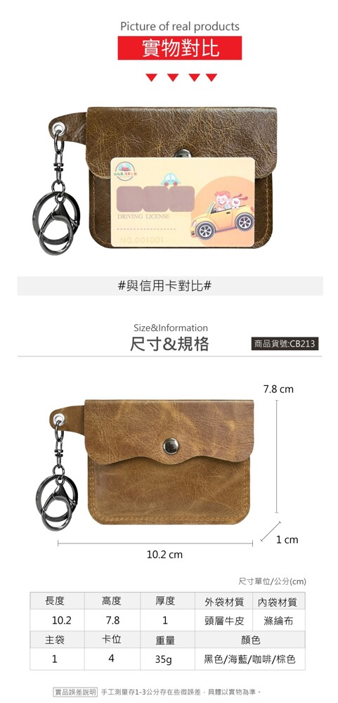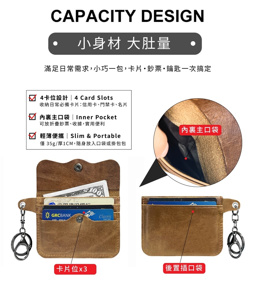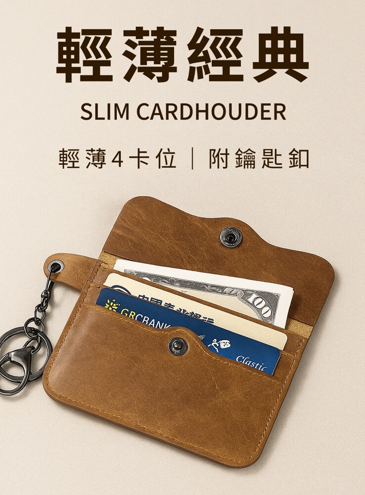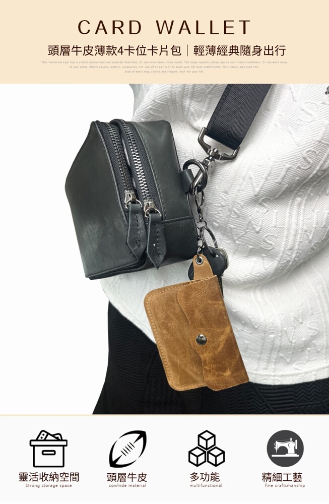 商品名稱:【喜番屋】真皮頭層牛皮薄款4卡位卡片包【CB213】