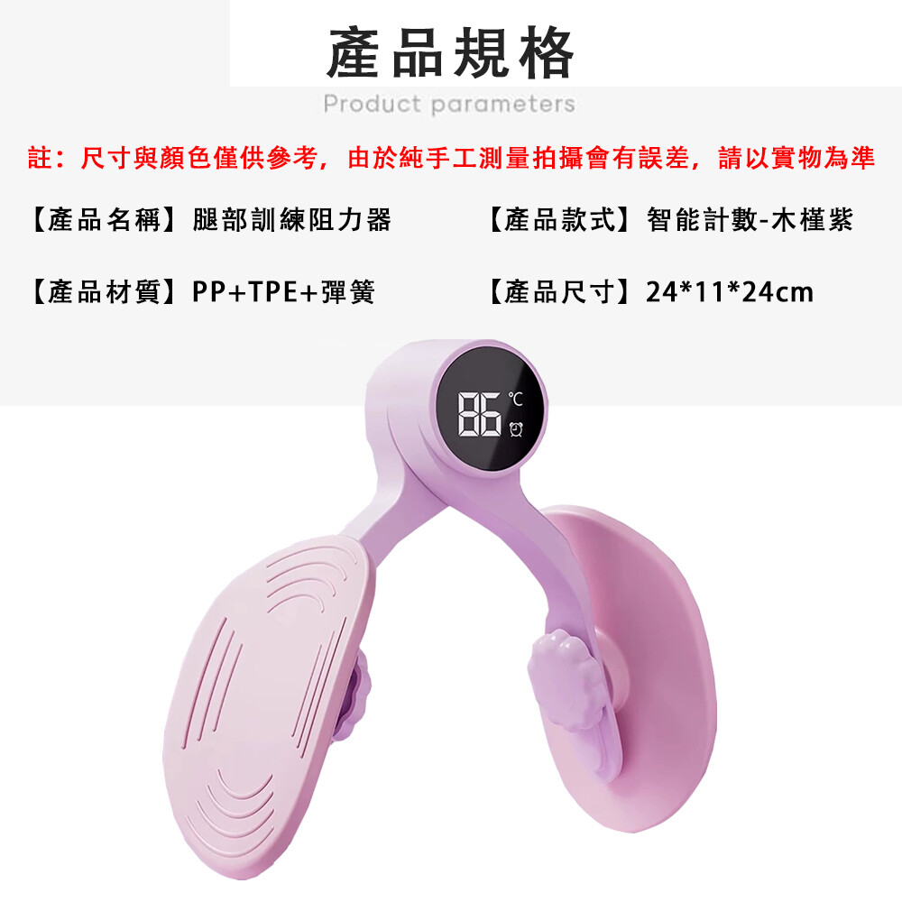 產品信息 名稱: 盆底肌訓練器 ·顔色:優雅紫 材質:PP+TPE+彈簧 適宜:瑜伽/健身/女士瘦腿人群 重量:550g 注:尺寸均爲手工測量,略有誤差,請以實物爲准! 特點 安全穩固 堅實耐用 360°旋轉 適合任意腿型