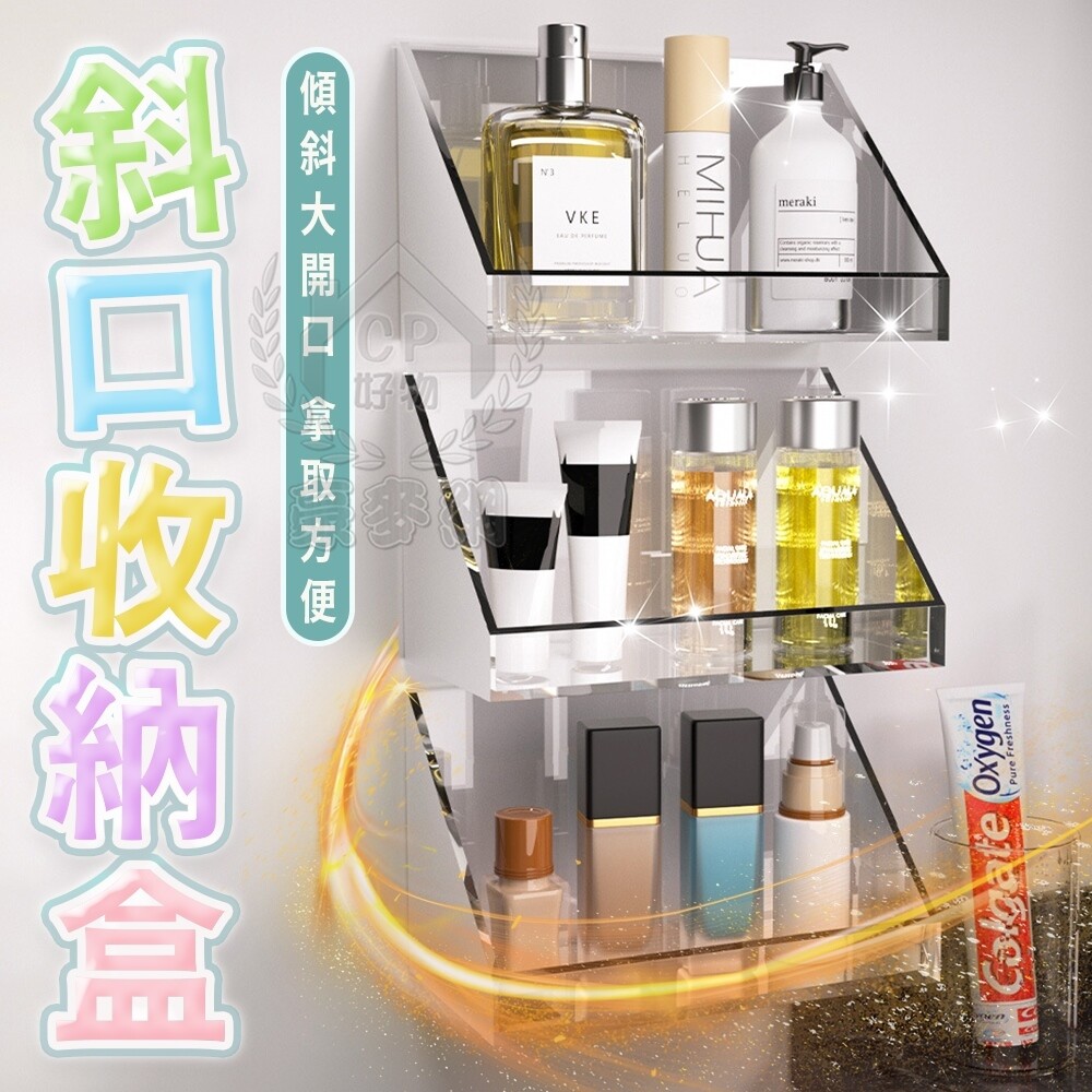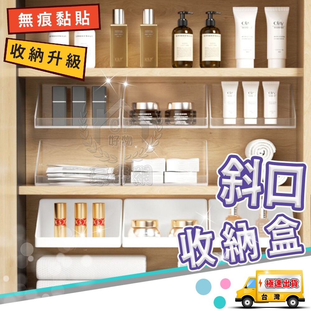 【斜口收納盒】壁掛收納盒 浴室收納架 化妝品收納架 鏡櫃收納盒☆