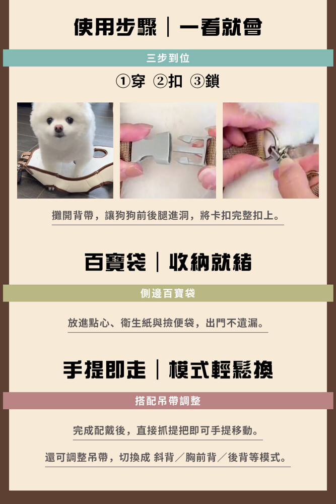 側邊收納超實用:可放零食、撿便袋、衛生紙小物
