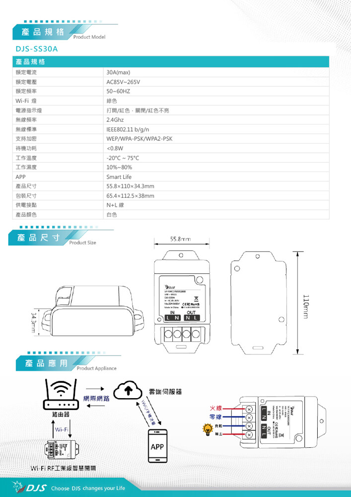 手機控制、本機按鈕控制、遙控器控制(選購)、語音控制、定時開關、循環定時、隨機定時、倒數計時、通電狀態設置