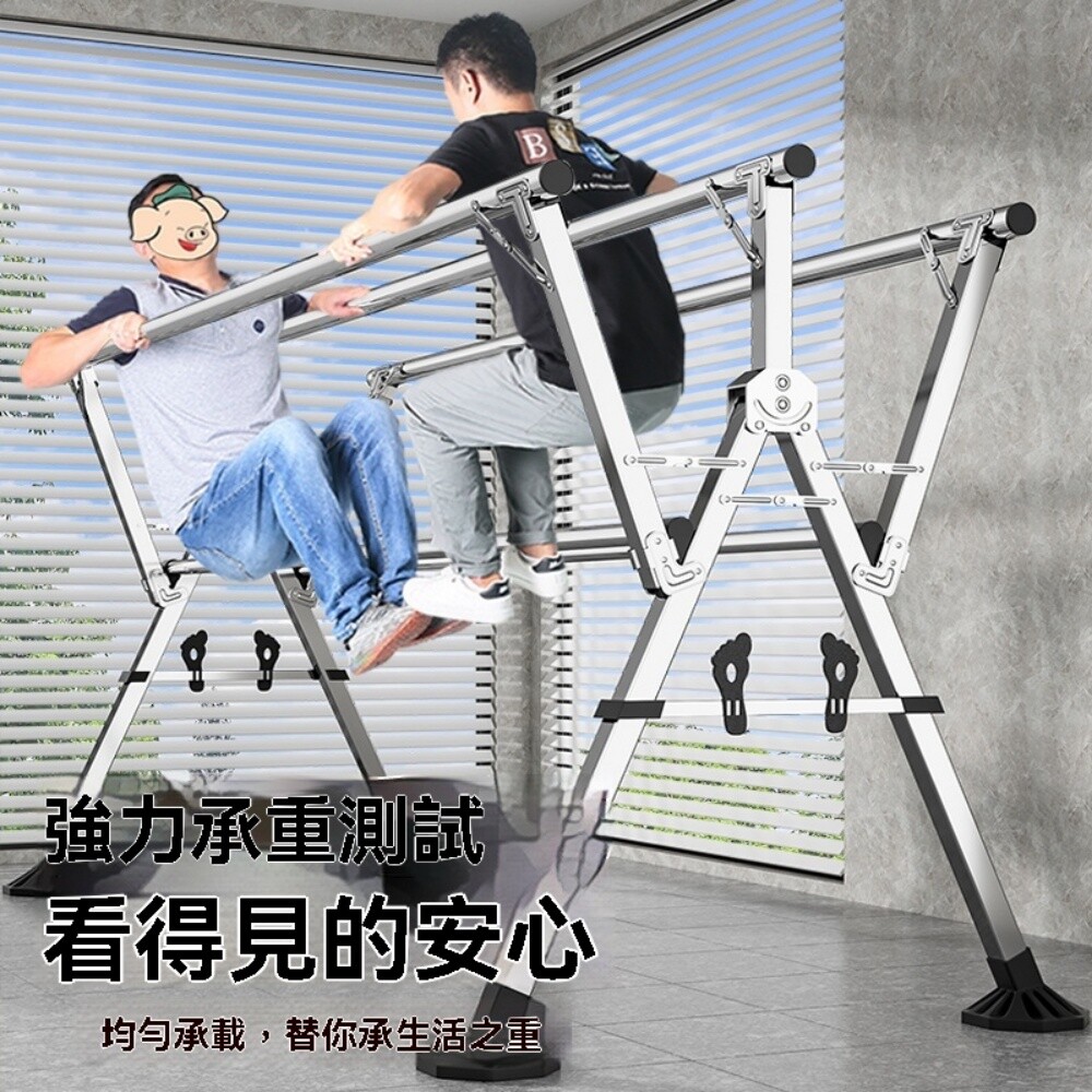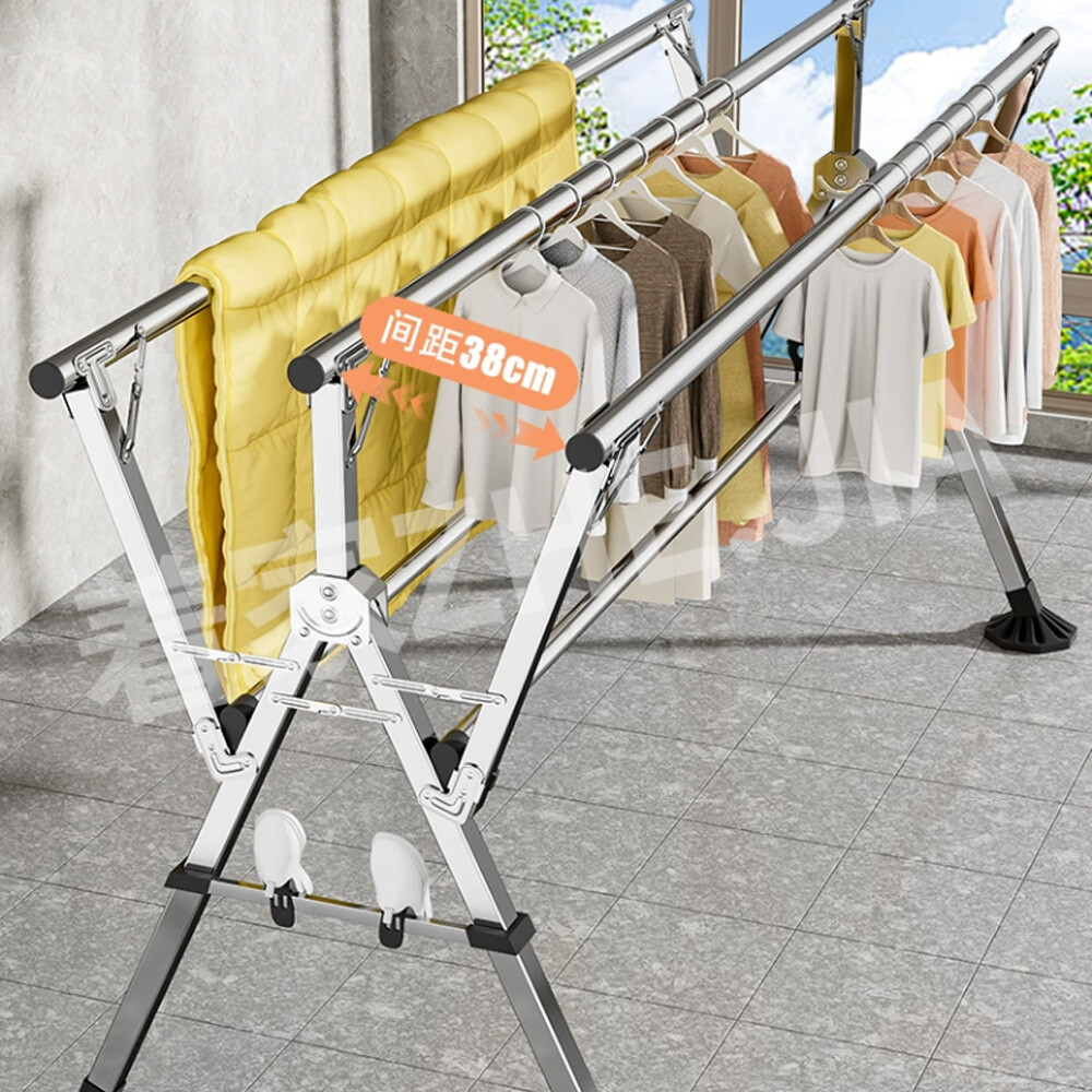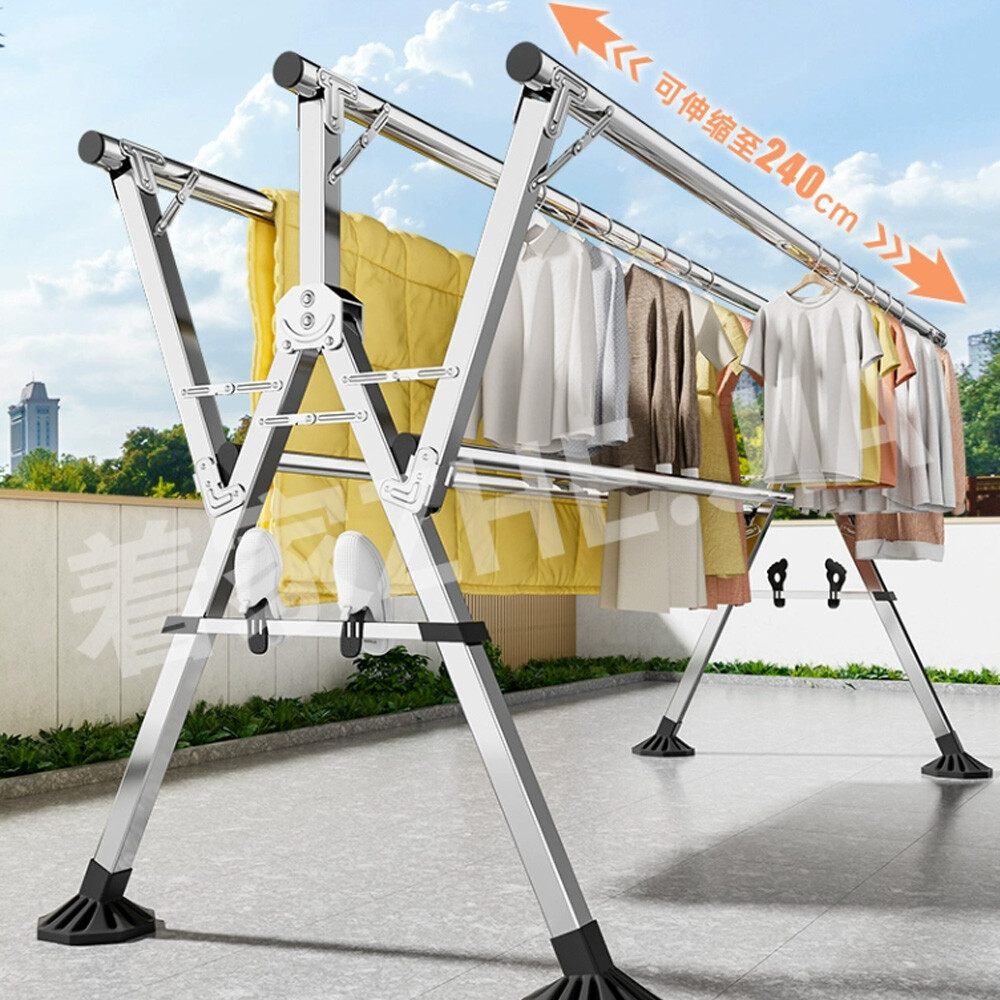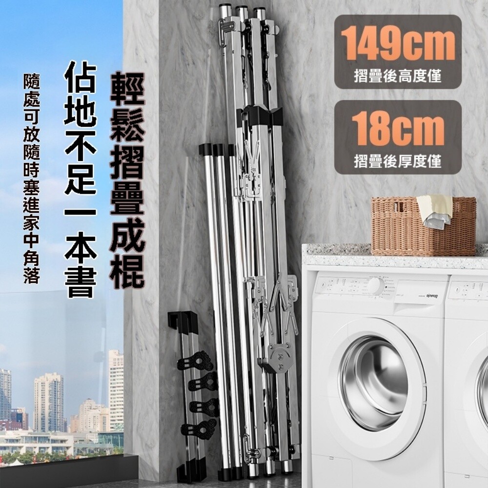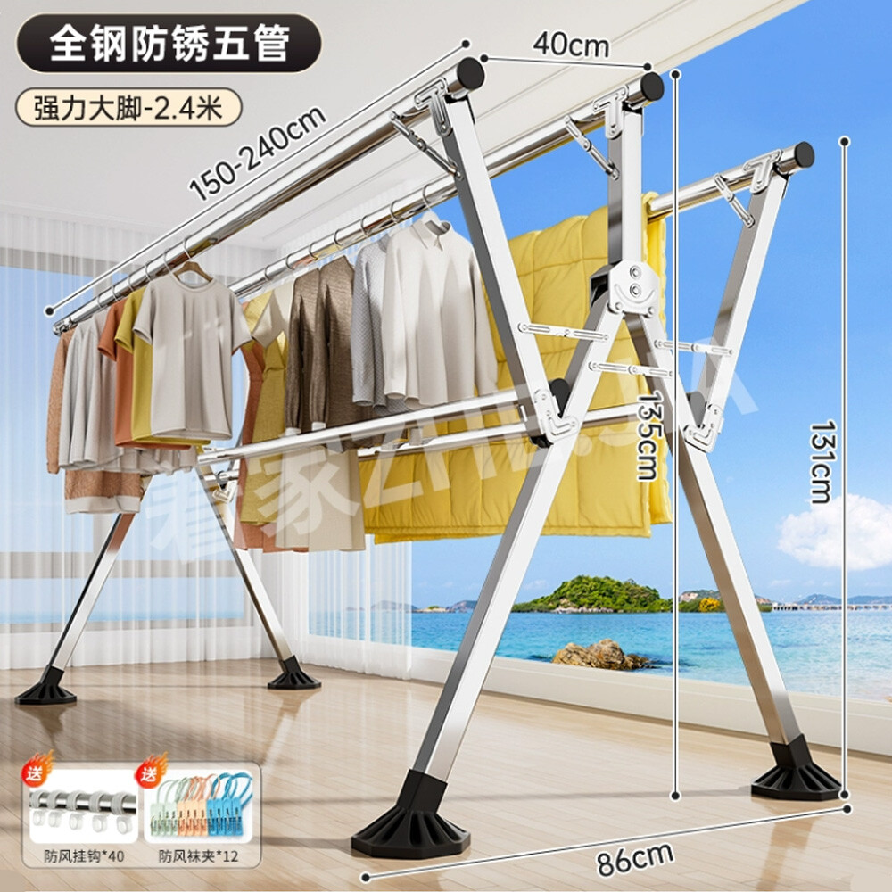 免安裝晾衣架 可伸縮折疊曬衣架 家用陽臺防風大腳晾曬架 不鏽鋼曬被架 五杆長1.5-2.4米 強穩固