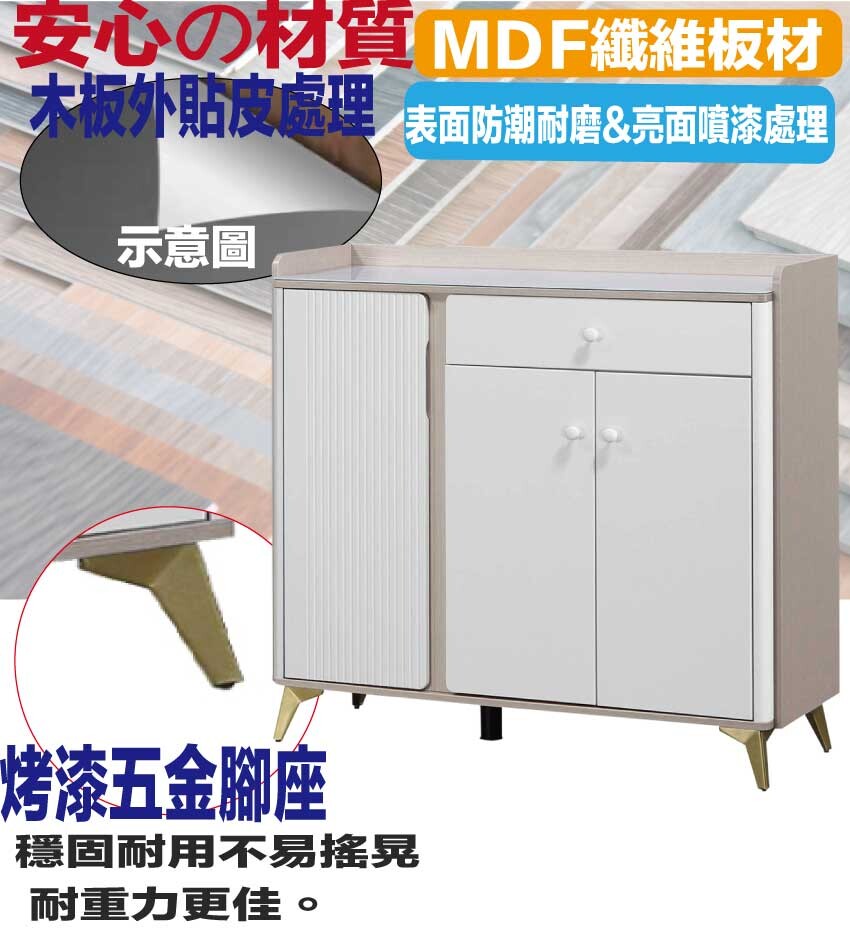 採用防潮MDF板+烤漆金屬腳座+防夾手緩衝門片五金+3mm仿大理石紋強化玻璃頂板等安心材質製造