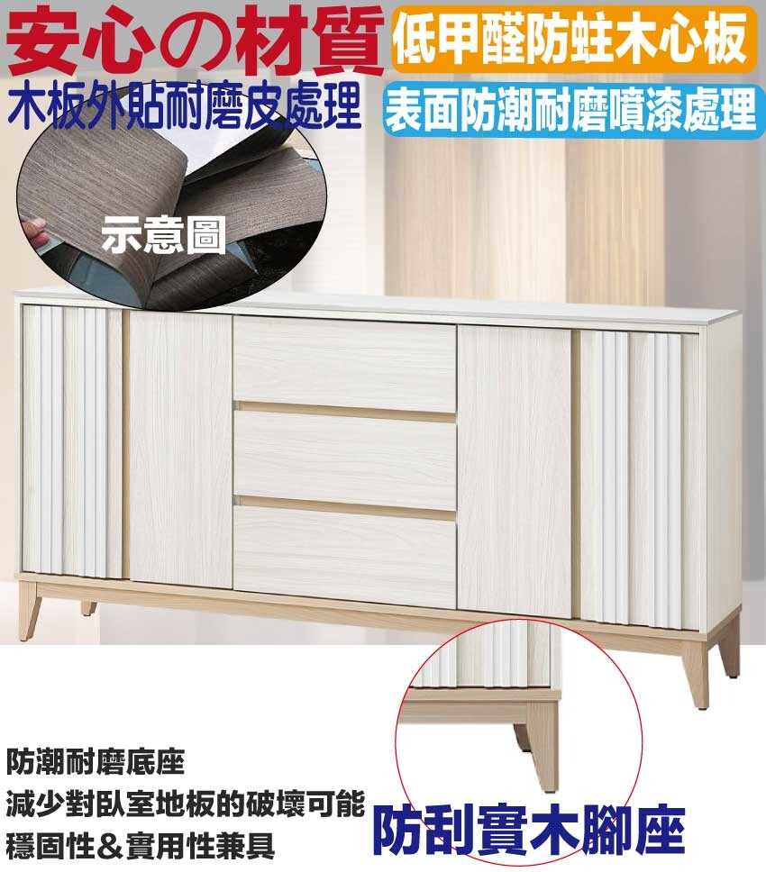 【綠家居】亞畢克6尺岩板四門三抽低餐櫃 現代雙色系+安心材質製造,使用放心+搭配居家更便利,採用防蛀木心板+防刮實木腳座+五金滑軌結構+防夾手緩衝門片五金+12mm高硬度岩板桌面板等安心材質製造 ,外層採用防潮耐磨噴漆處理搭配採用開門櫃+三抽屜+內開放層格等收納空間設計,全由專人配送到家,專業安心服務,替你省下更多時間!