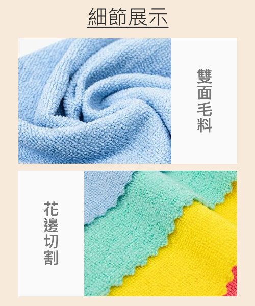 【商品規格】 .品名:超細纖維彩虹抹布 .顏色:隨機出貨 .材質:超細纖維 .尺寸:約30x30cm .數量:6入 .產地:中國 .內容物:超細纖維彩虹抹布x6入 .注意事項:請遠離火源及高溫處 ※尺寸為人工測量多少會有些許誤差,請以實際商品為主