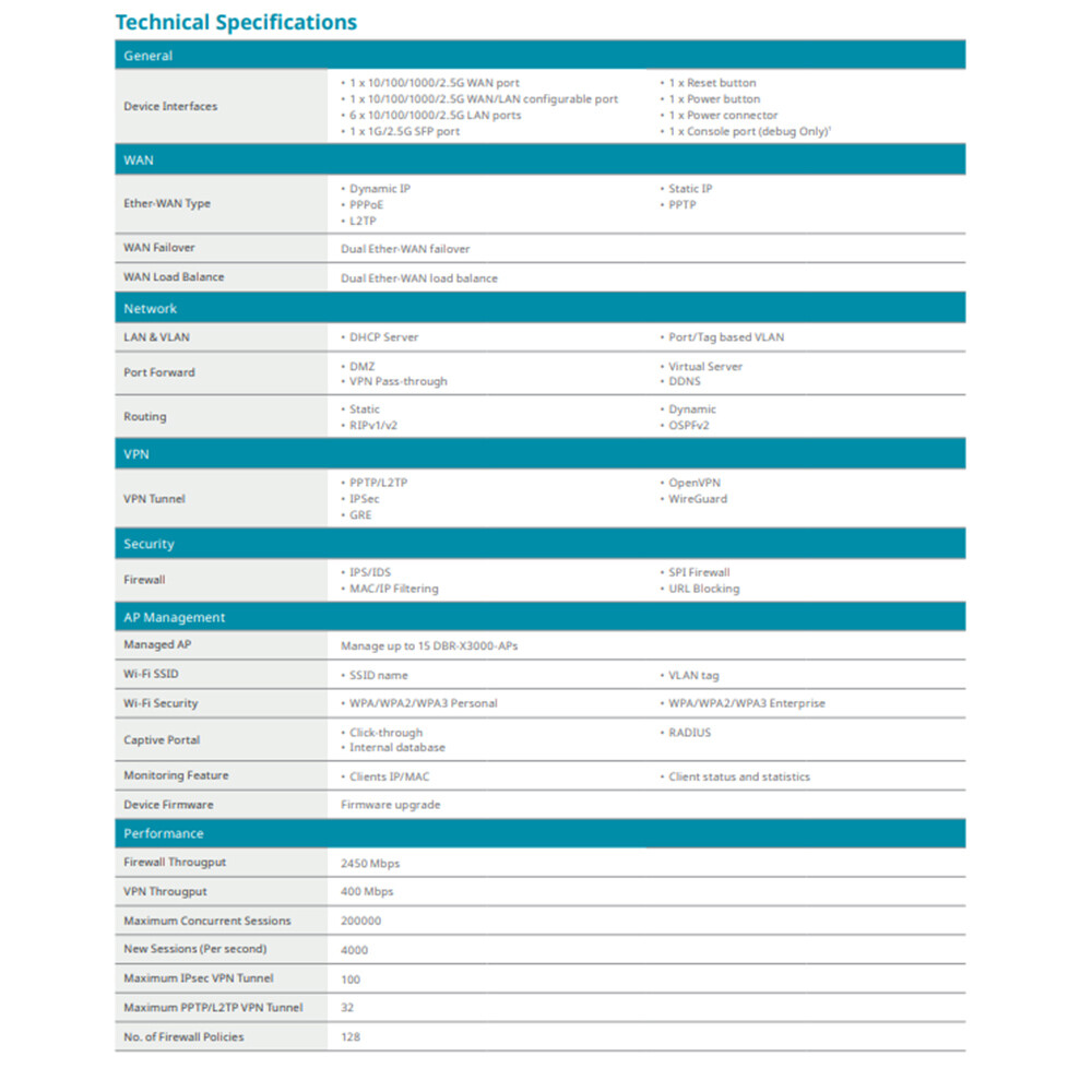 -1 x 2.5G SFP WAN/LAN網路埠支援長距離連接。