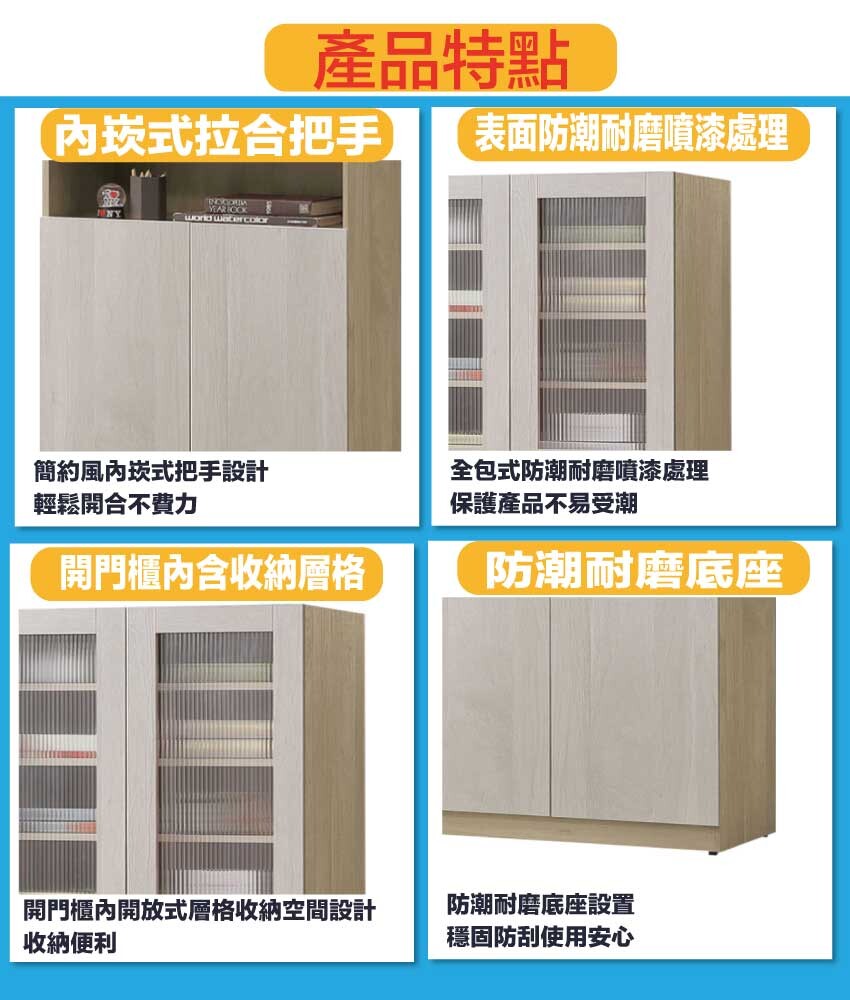 【綠家居】蘿克2.5尺中空四門書櫃/收納櫃 木紋雙色系+安心材質製造,使用放心+搭配居家更便利,採用防蛀木心板+防刮耐磨底座+防夾手緩衝門片五金+長虹PC耐力板等安心材質製造 ,外層採用防潮耐磨噴漆處理搭配採用開門櫃+內&外層格等收納空間設計,全由專人配送到家,專業安心服務,替你省下更多時間!