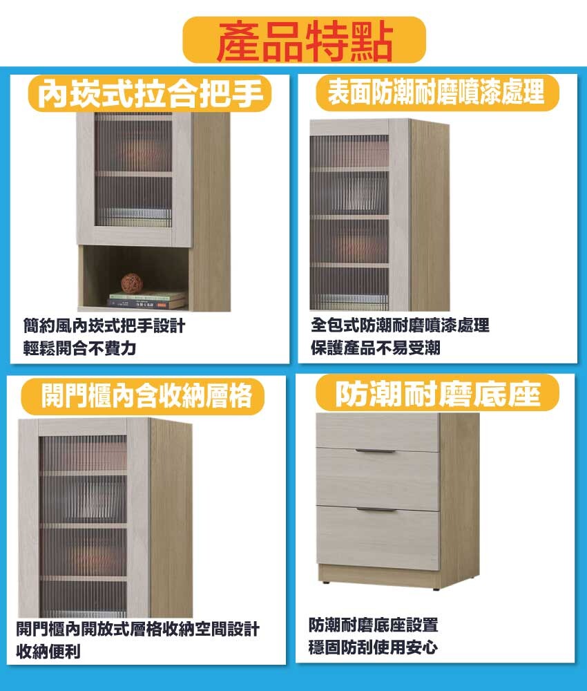 搭配採用開門櫃+三抽屜+內&外層格等收納空間設計