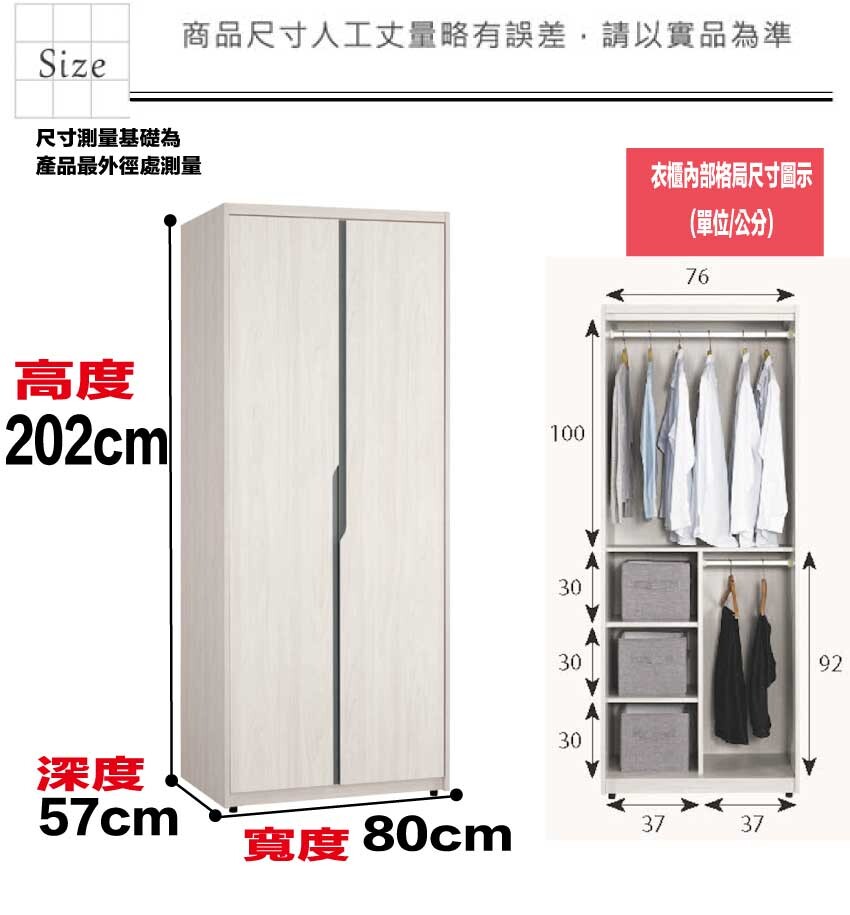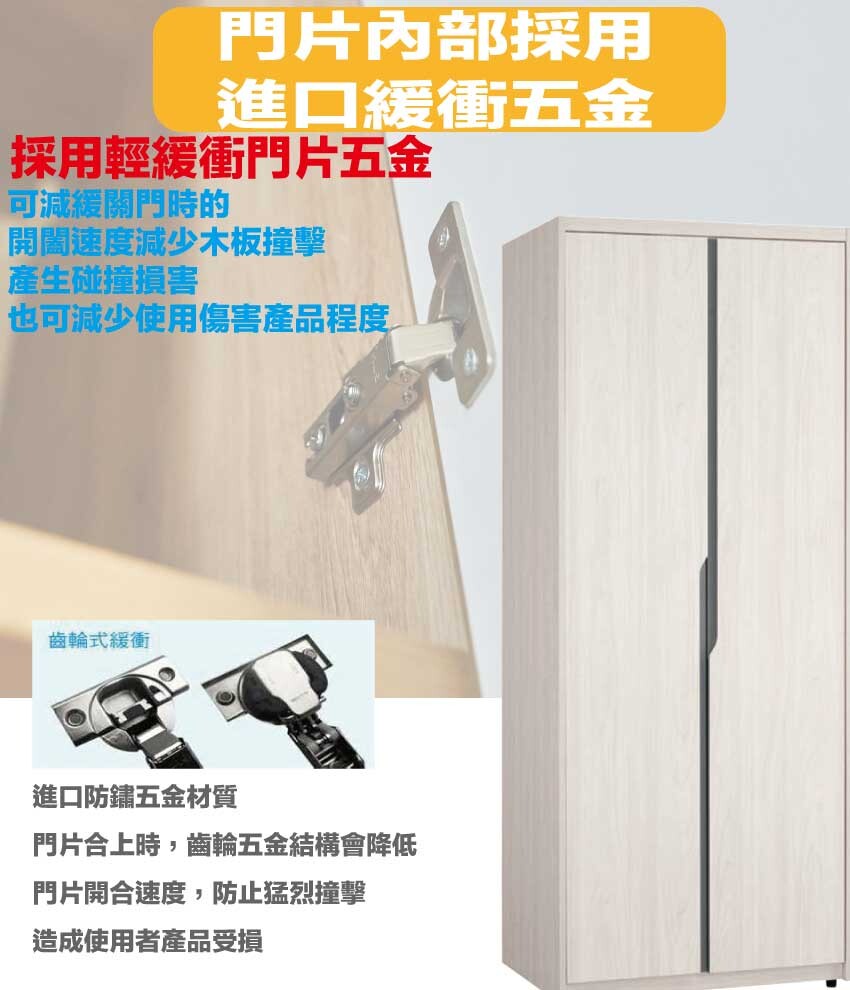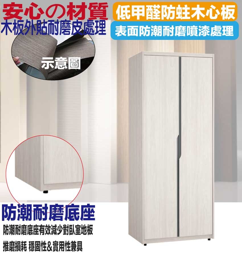 【綠家居】丹尼2.7尺二門雙吊多格衣櫃 淺橡木紋色系+安心材質製造,使用放心+搭配居家更便利,採用防蛀木心板+防潮耐磨底座+防夾手緩衝門片五金等安心材質製造 ,外層採用防潮耐磨噴漆處理搭配採用開門櫃+吊衣桿+內開放層格等收納空間設計,全由專人配送到家,專業安心服務,替你省下更多時間!