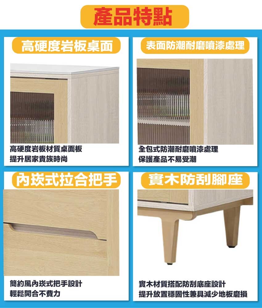 【綠家居】菲可雙色5尺推&開門岩板高餐櫃組合 現代雙色系+安心材質製造,使用放心+搭配居家更便利,採用防蛀木心板+防刮實木腳座+五金滑軌結構+5mm長虹直紋PC耐力板+12mm高硬度岩板桌面板等安心材質製造 ,外層採用防潮耐磨噴漆處理搭配採用推門櫃+開門櫃+三抽屜+內&外開放層格+上座附插座設置等收納空間設計,全由專人配送到家,專業安心服務,替你省下更多時間!