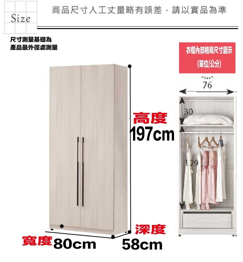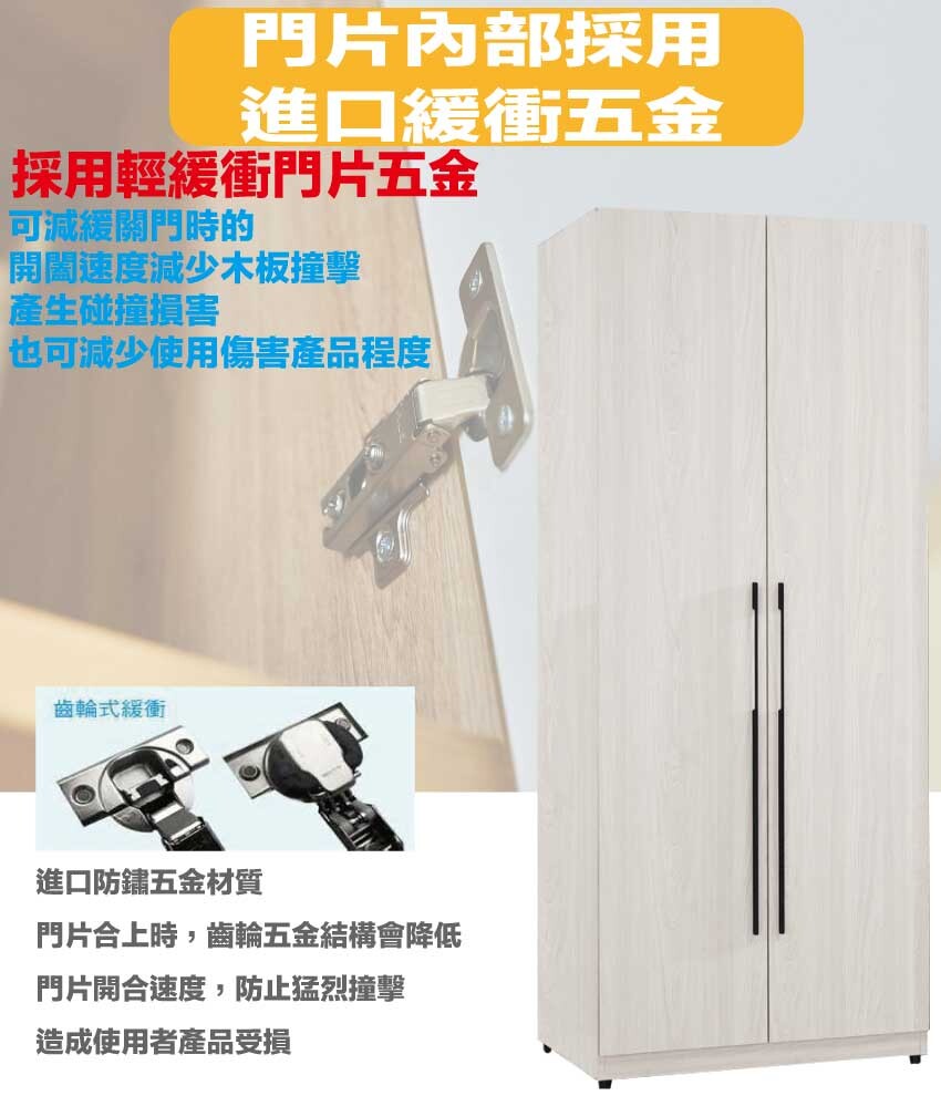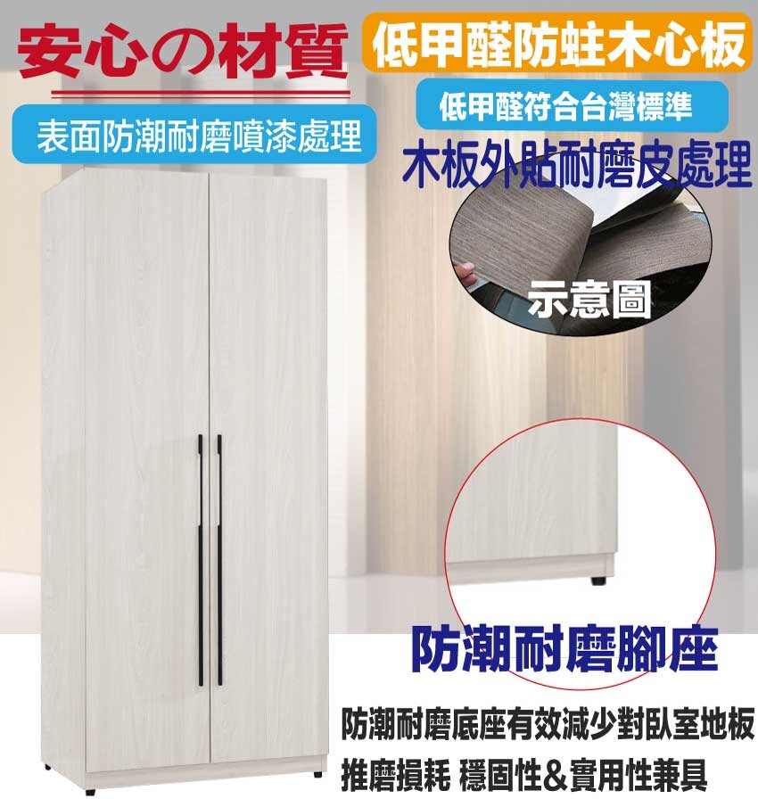 【綠家居】朵利2.7尺二門內單抽衣櫃 木紋雙色系+安心材質製造,使用放心+搭配居家更便利,採用防蛀木心板+防潮耐磨底座+防夾手緩衝門片五金+五金滑軌結構等安心材質製造 ,外層採用防潮耐磨噴漆處理搭配採用開門櫃+吊衣桿+單抽屜+內開放層格等收納空間設計,全由專人配送到家,專業安心服務,替你省下更多時間!