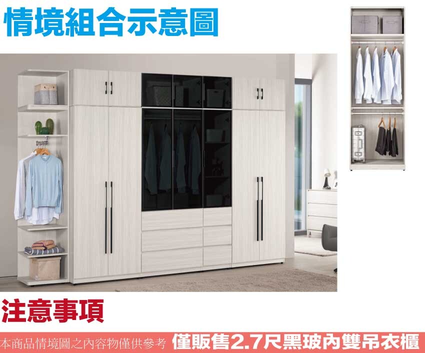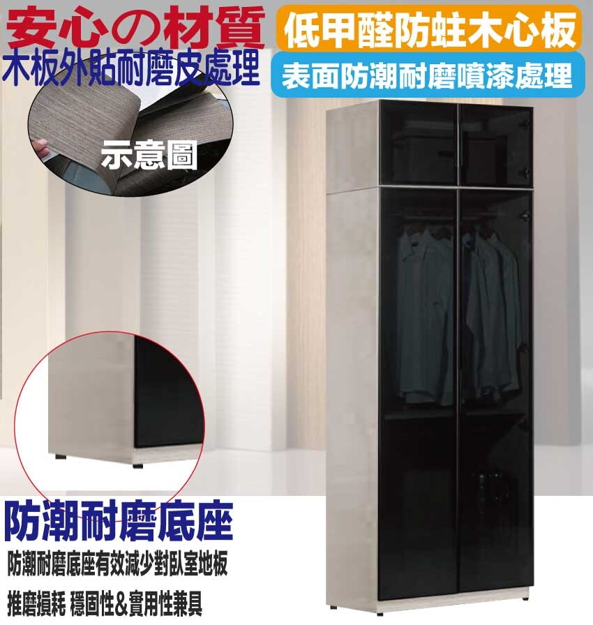【綠家居】朵利2.7尺鋁門黑玻加高衣櫃 木紋雙色系+安心材質製造,使用放心+搭配居家更便利,採用防蛀木心板+防潮耐磨底座+防夾手緩衝門片五金+鋁製黑漆邊框+5mm強化黑玻璃等安心材質製造 ,外層採用防潮耐磨噴漆處理搭配採用開門櫃+吊衣桿+內開放層格等收納空間設計,全由專人配送到家,專業安心服務,替你省下更多時間!