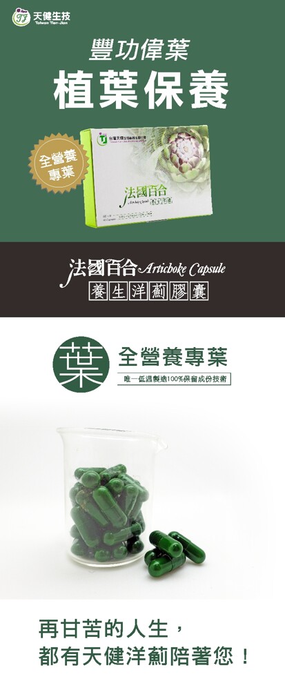 法國百合(洋薊)能迅速恢復並增強體力、促進新陳代謝,適合飲食習慣不當、操勞過度、應酬過多、夜貓族、經常疲倦者極佳的營養補充品。