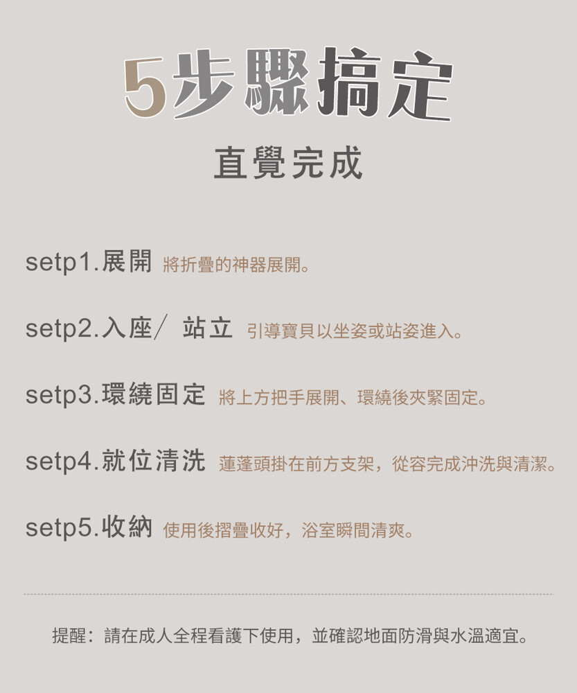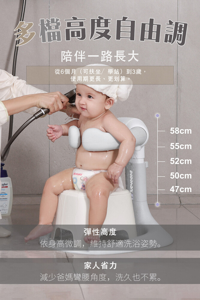 - 一扣安穩解放媽媽的雙手,幫寶貝洗澡也可以很舒爽啦!