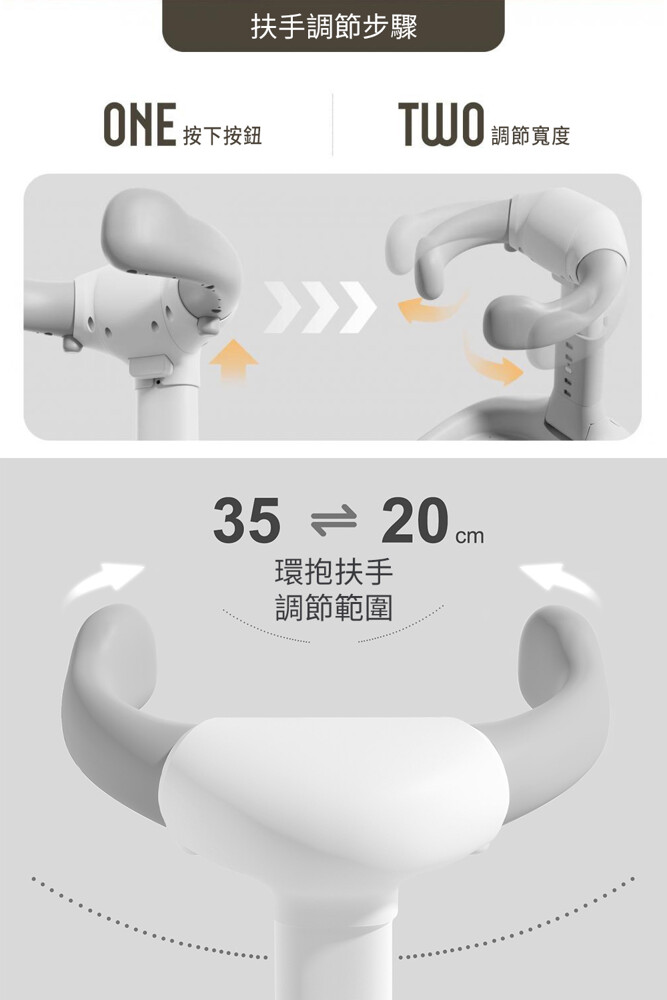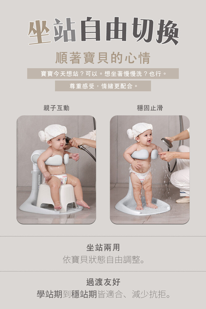 - 360度環繞固定,站穩不滑動還可以搭配專屬「寶貝請上座」