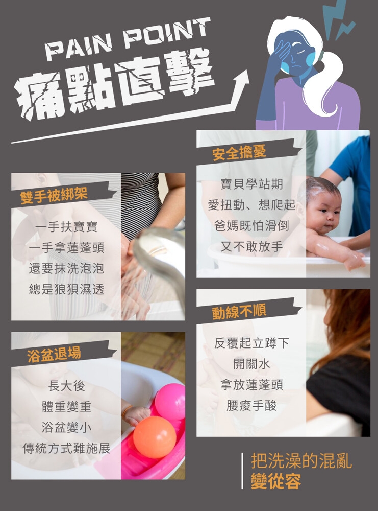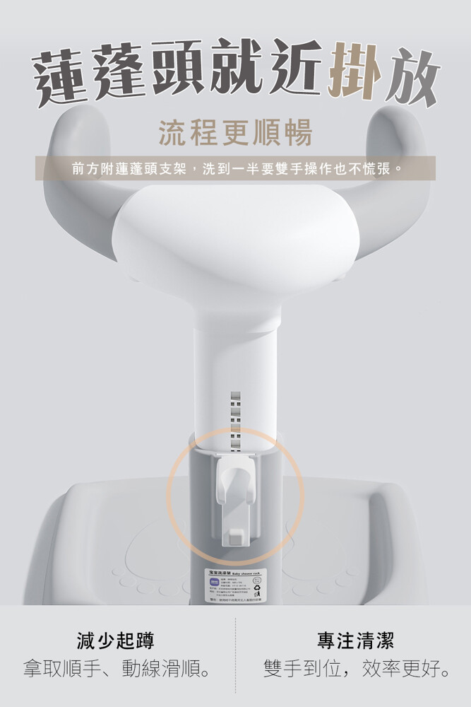 - 專屬蓮蓬頭支架,媽媽不用再當彈力女超人囉~