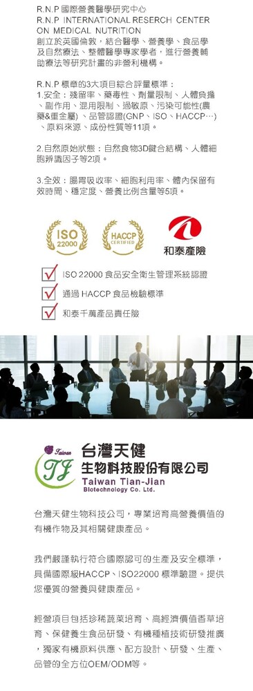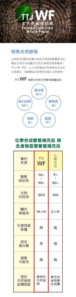 高營養天然食物,具有高吸收率、高利用率、體內停留時間長;無殘留、無負擔的優點。本產品經酵素法處理,不引起酵母過敏反應。保證無小麥、榖膠、乳糖、色素、香料、防腐劑等添加物。