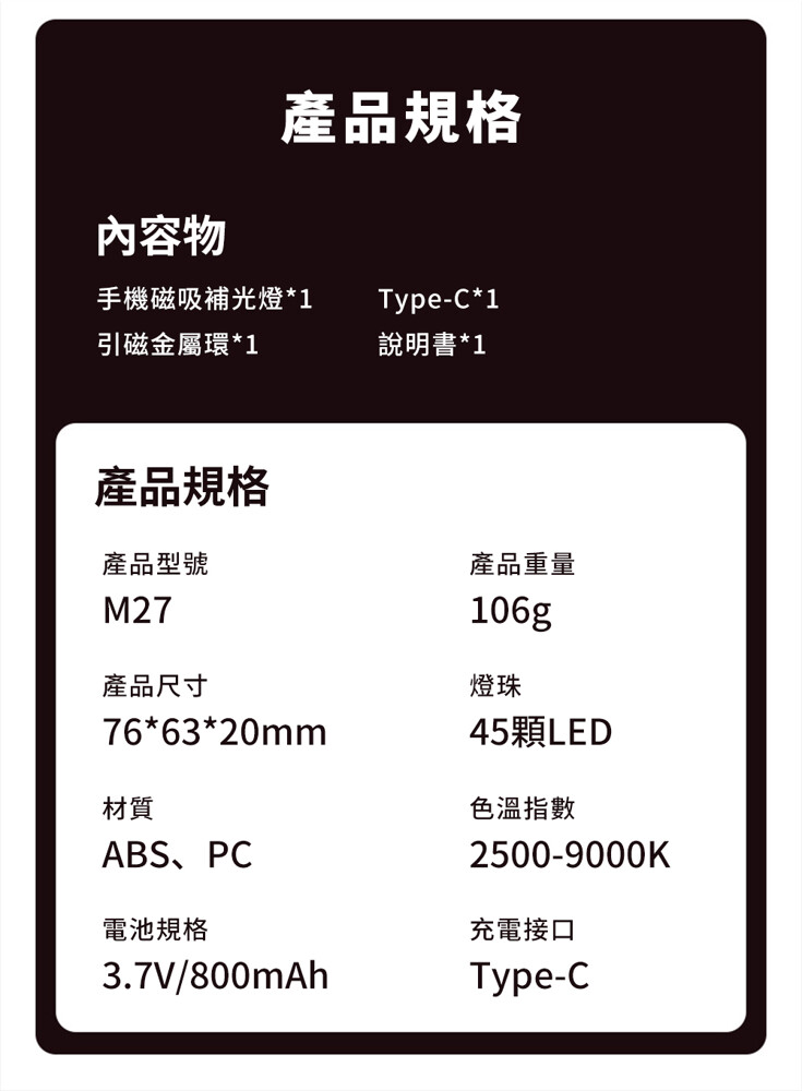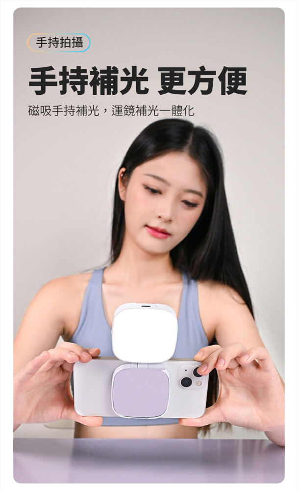 當妳想隨時拍出最美的自己,不需要笨重設備、不想搞得像在搬攝影棚。MagLite 美魔女補光燈,就是那個妳可以「一手掌握」的拍攝神器: 化繁為簡,拍攝裝備一盒搞定 磁吸設計,裝了就拍、卸了就收 智能補光,正面背面都能閃亮上場 多角度支架,拍片追劇一樣穩
