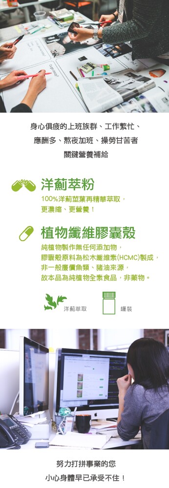 成分:100%台灣本產新鮮洋薊葉片萃取(膠囊外殼為植物原料HPMC製成)