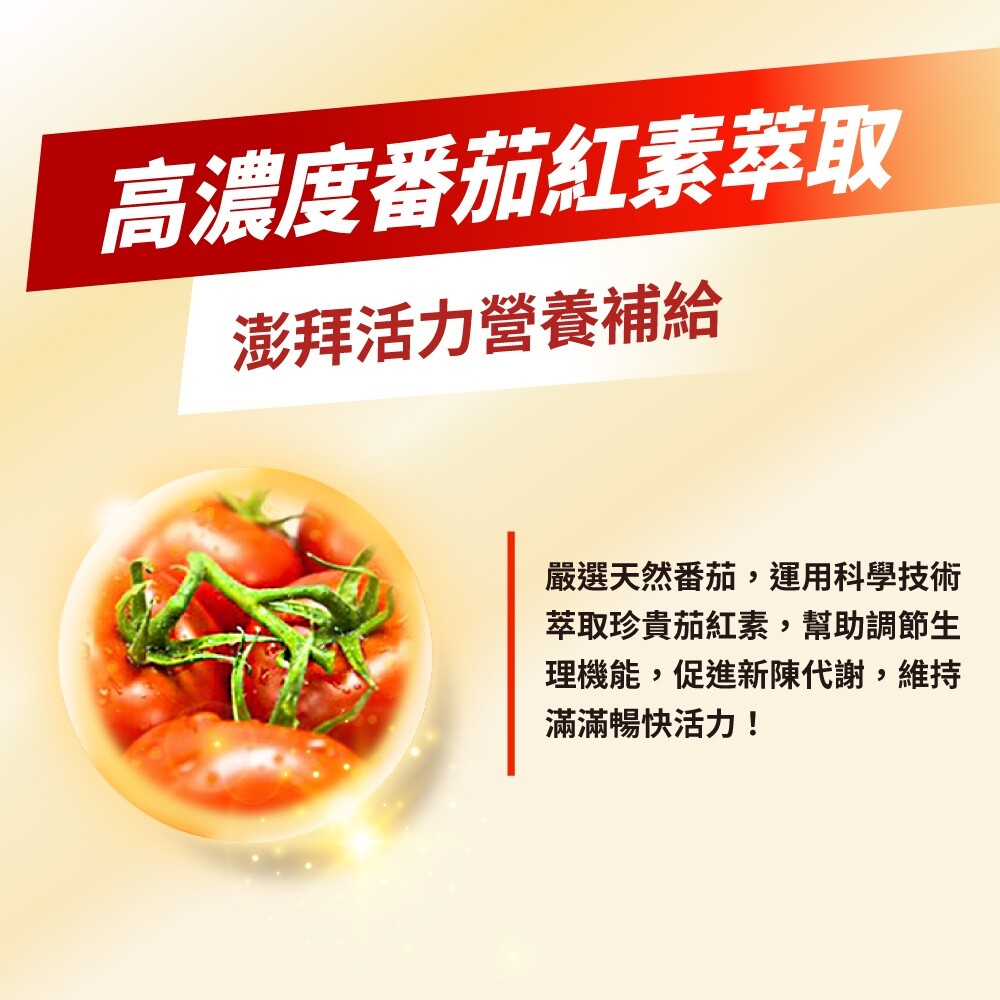 成分說明:番茄萃取物[辛烯基丁酸鈉澱粉、蔗糖、水、番茄紅素、抗壞血酸(抗氧化劑)、生育醇(抗氧化劑)]、南瓜籽取物(南瓜籽萃取物、麥芽糊精)、微結晶狀a-纖維素、葡萄糖酸鋅、白鳳豆萃取物(麥芽糊精、白鳳豆萃取物)硬脂酸鎂、二氧化矽。