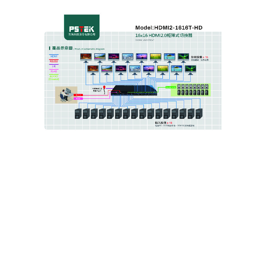 .16x16 HDMI矩陣式切換器,運用及便利方式將任意16個高畫質影音,HDMI訊號發送到任意16個接收HDMI高畫質螢幕設備