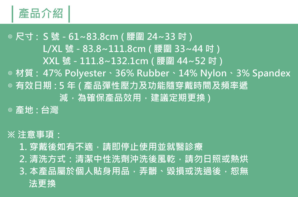 L/XL號(腰圍83.8~111.8cm 、