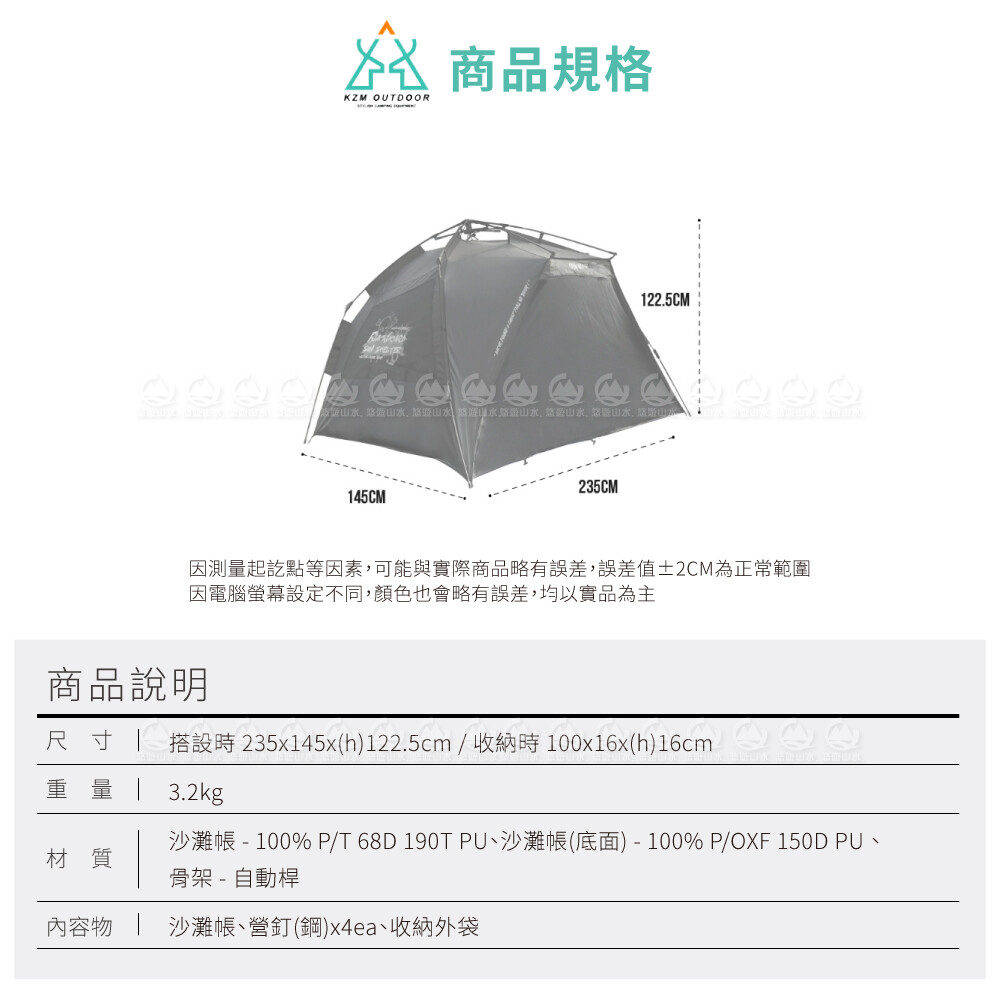 內容物:沙灘帳、營釘(鋼)x4ea、收納外袋★下標前注意★