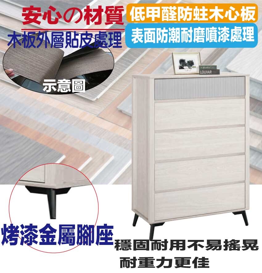 【綠家居】克萊2.7尺雙色五抽斗櫃 木紋雙色系+安心材質製造,使用放心+搭配居家更便利,採用防蛀木心板+五金滑軌結構+烤漆金屬腳座等安心材質製造 ,外層採用防潮耐磨噴漆處理搭配採用五抽屜+開放桌面等收納空間設計,全由專人配送到家,專業安心服務,替你省下更多時間!