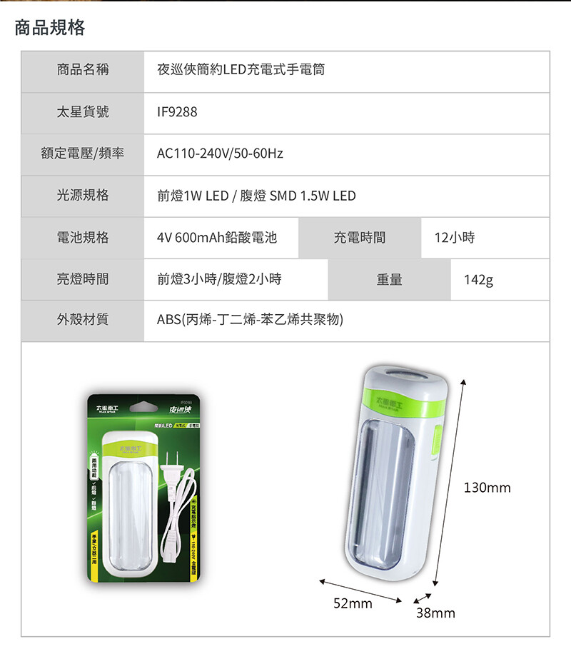 光源規格:前燈 1W LED / 腹燈 1.5W LED