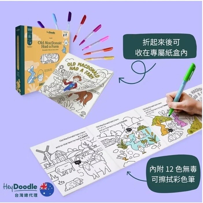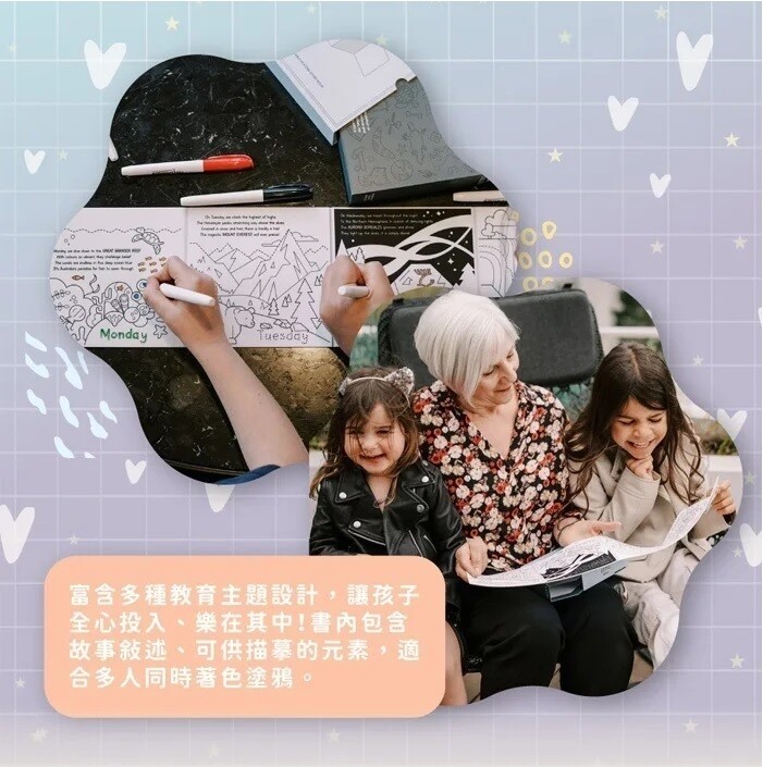◆ 含一本8頁的可重複使用矽膠塗色書 12支無毒可擦拭色筆 附便攜抽屜式紙盒