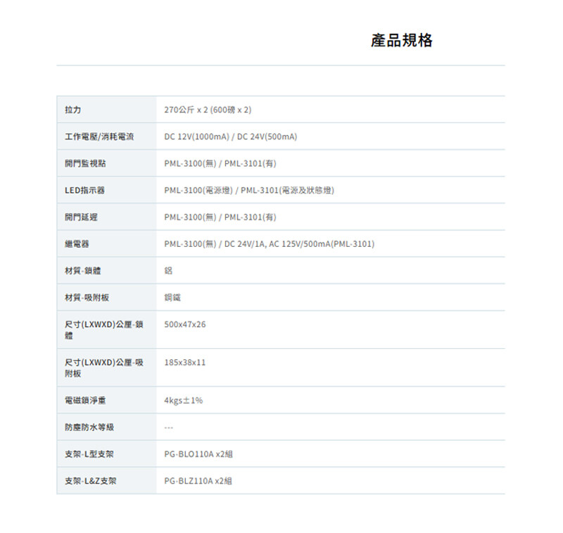 帝網監視器 鵬驥 Pegasus PML-3101 600 磅 270公斤 雙開門 磁力鎖