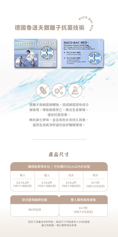 單人鋪棉床包-3.5×6.2尺(107×188公分)/可包覆床墊厚度:約35公分±5%;歐式壓框鋪棉枕套(拉鍊開口)─45×75公分