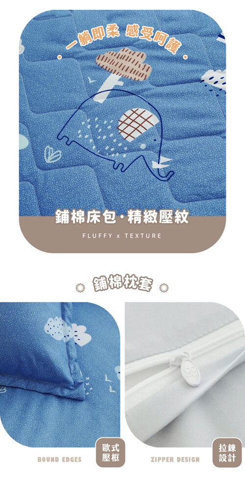 ✨內容物:單人鋪棉床包x1+歐式壓框鋪棉枕套x1,二件╱組✨
