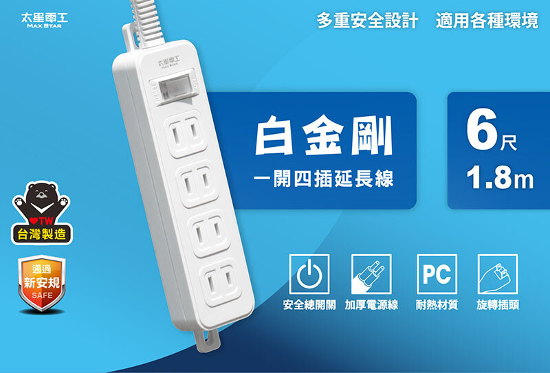 ‧總開關使用:電源總管理,一鍵即可管理所有電源,快速便利又安全。