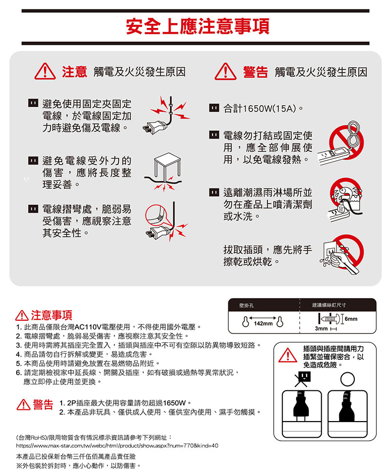 2.本產品非玩具、僅供成人使用、僅供室內使用、濕手勿觸摸。