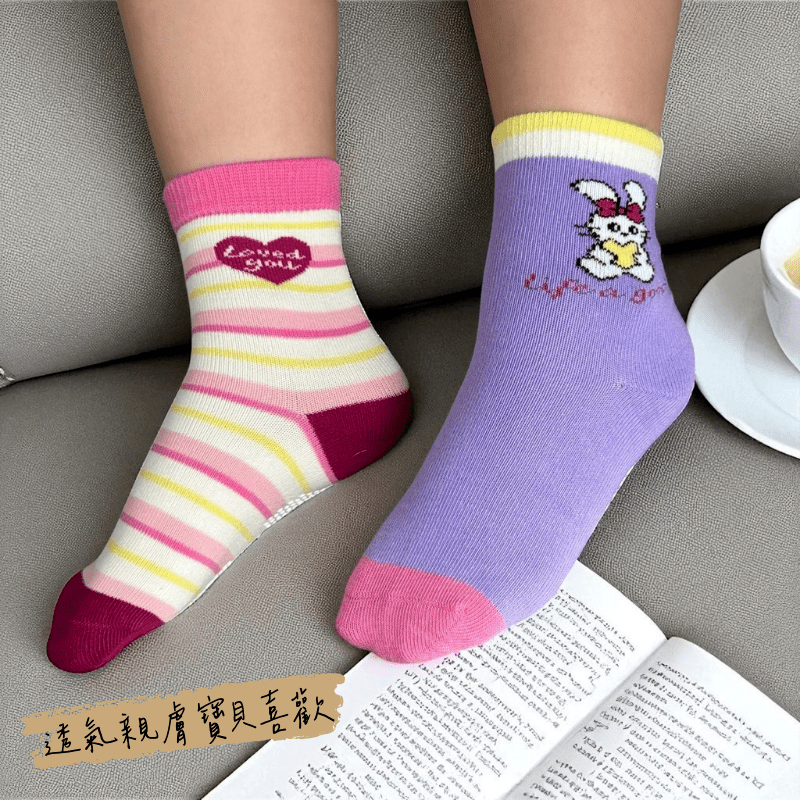 👍凱美棉業 |純棉止滑童襪 甜美可愛款 愛心兔兔童襪 女童襪 可愛童襪