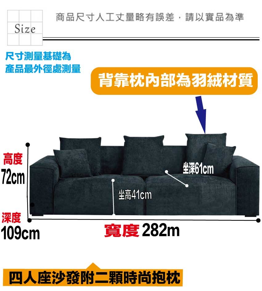 【綠家居】艾布灰黑色短絨布四人座沙發椅 現代灰黑色系+現代美型外觀+安心材質製造,就是這種頂級質感的設計,能輕鬆地融入各種空間風格,採用內部實木板材框架+防潮造型腳座+進口短絨布料+高回彈力加厚泡棉等安心材質製造,品質安心有保障,現在購買專人送到府服務,免組裝+免運費,讓你省時省力省運費!