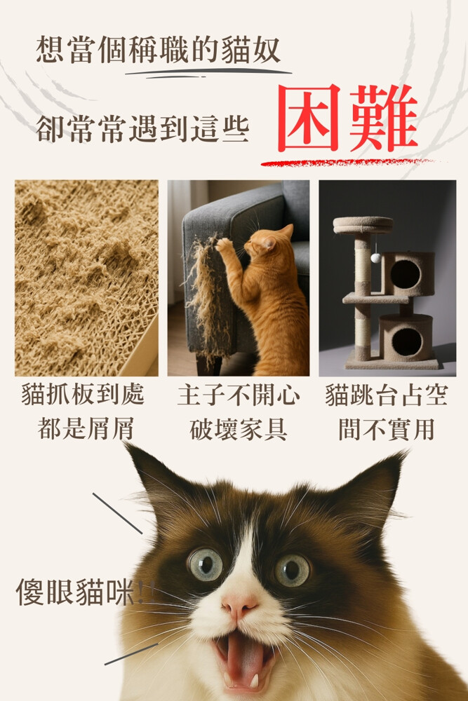 -不管橫著擺直的放還是你要疊疊樂都沒問題,隨心所欲超自由! -輕鬆融入家居實現「人貓合一」打造專屬你的貓咪無限城 -硬毛氈加厚設計耐抓不掉屑,奴才們不用再每天掃紙屑啦 -自帶逗貓球設計,貓主子3秒就淪陷逃不出這無限城 -超高CP值讓你自由組裝還比買貴桑桑的貓跳台省荷包!