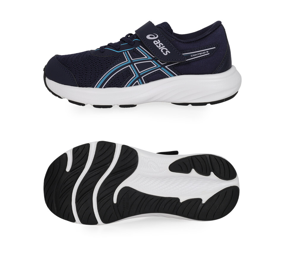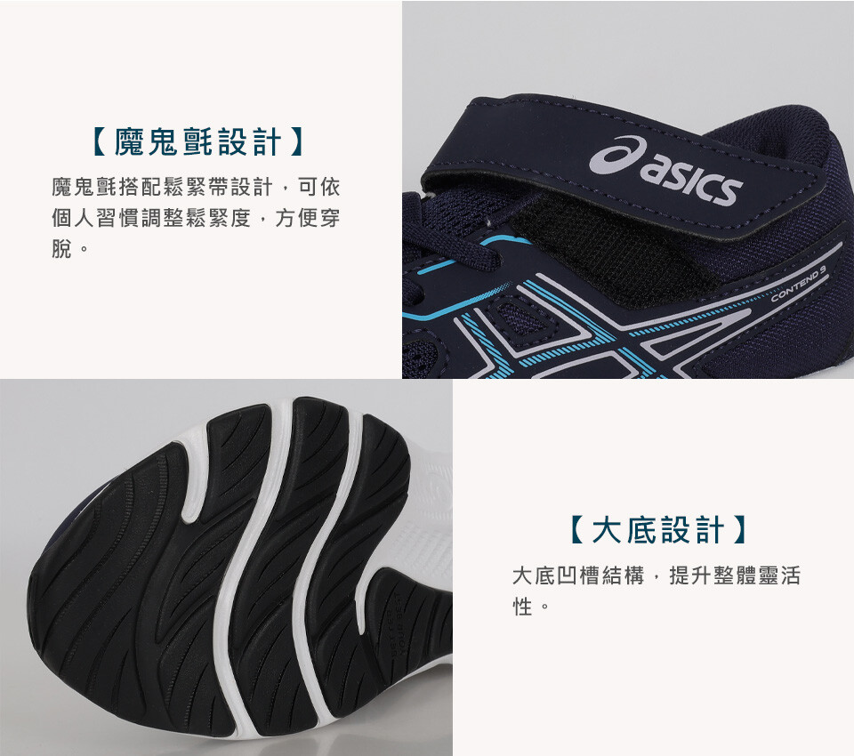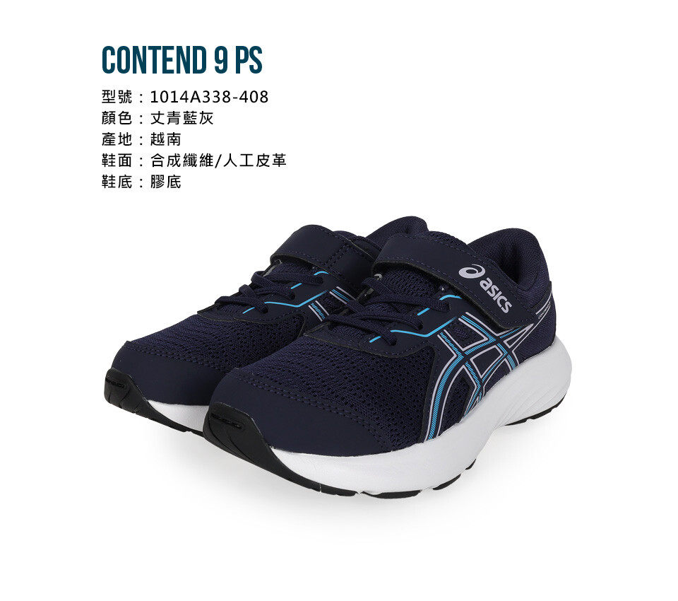 ASICS CONTEND 9 PS男女中童慢跑鞋-魔鬼氈 訓練 運動 丈青藍灰