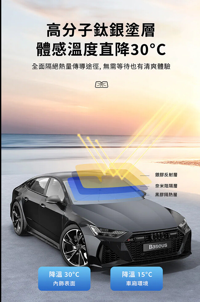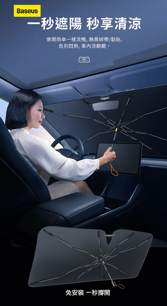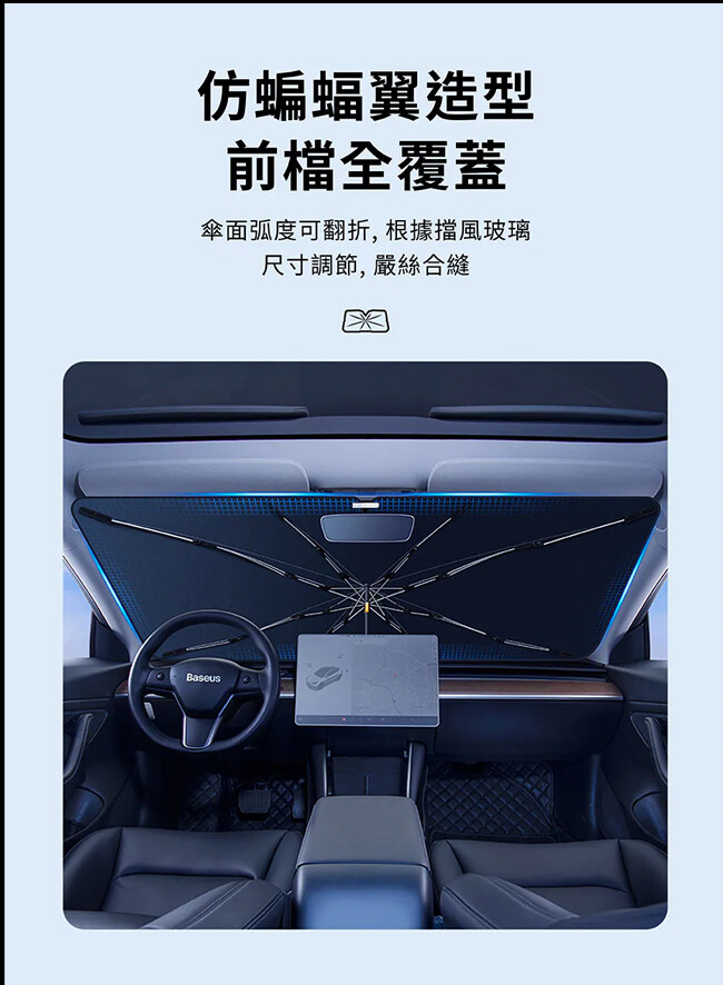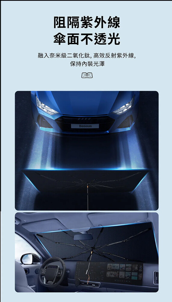 Baseus 酷享Lite 前擋風玻璃遮陽傘 銀鈦降溫清涼傘 8骨車用折疊遮陽擋板 遮陽車用