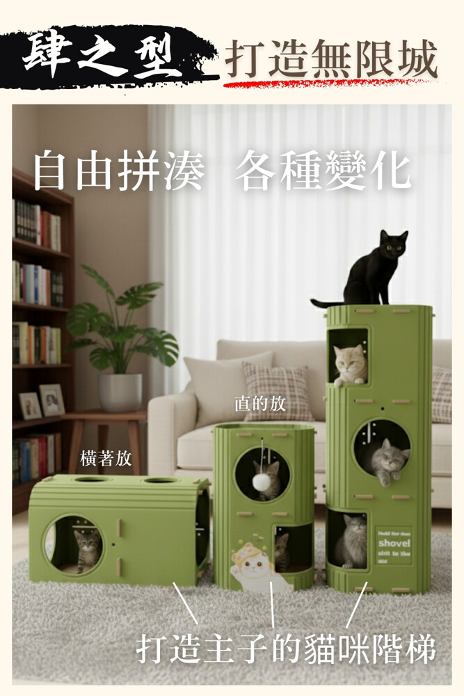 -不管橫著擺直的放還是你要疊疊樂都沒問題,隨心所欲超自由! -輕鬆融入家居實現「人貓合一」打造專屬你的貓咪無限城 -硬毛氈加厚設計耐抓不掉屑,奴才們不用再每天掃紙屑啦 -自帶逗貓球設計,貓主子3秒就淪陷逃不出這無限城 -超高CP值讓你自由組裝還比買貴桑桑的貓跳台省荷包!